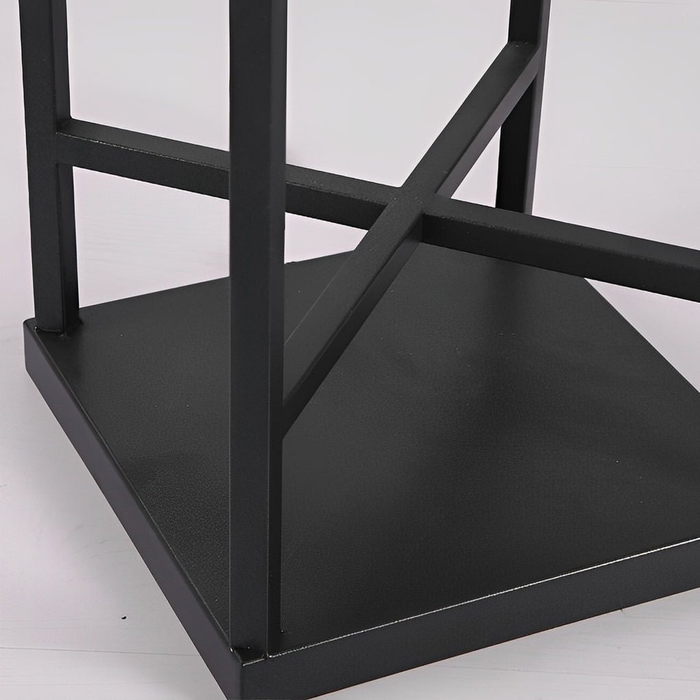 This Minihouzz outdoor floor lamp features a rustic modern aesthetic with a classic standing frame in a black stainless steel finish, topped with an acrylic-shaded LED light. Its design integrates a modern lantern-inspired style, updated with a sleek quadrilateral stand. The integrated LED light source is enclosed within an acrylic shade and supports both solar and hardwired power options.