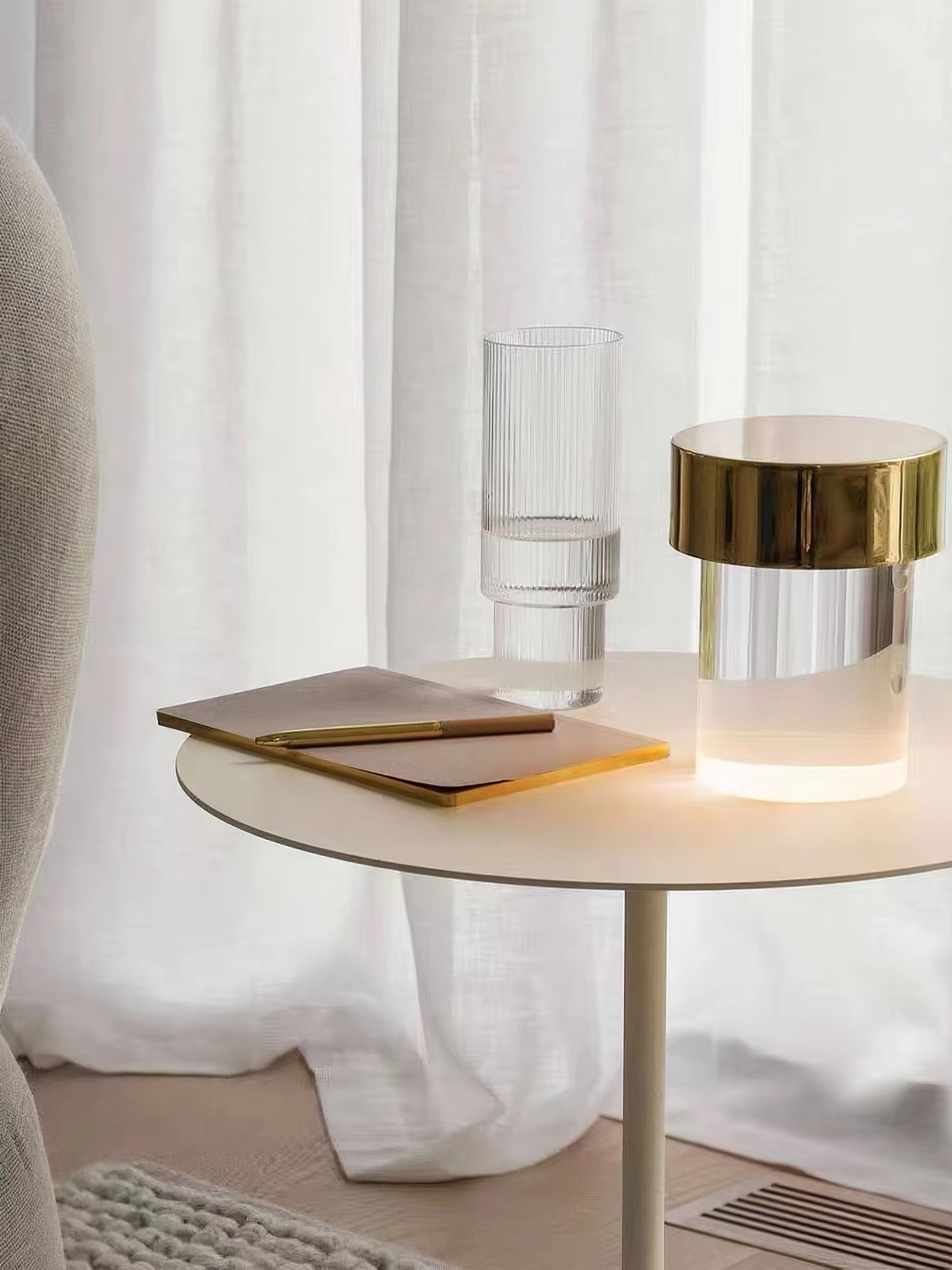 Illuminate any space with the MINIHOUZZ Column Design Portable Table Lamp. This rechargeable lamp features a solid glass base, inspired by ancient columns, which beautifully diffuses light. Its sleek design and durable battery make it suitable for various settings, adding elegance and functionality to any room.