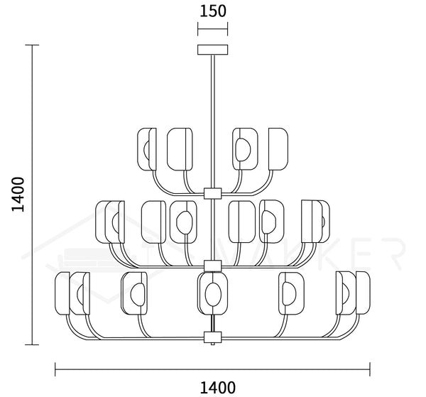 12heads size: Dia 115cm x H 100cm / ∅ 45.3″ x H 39.4″