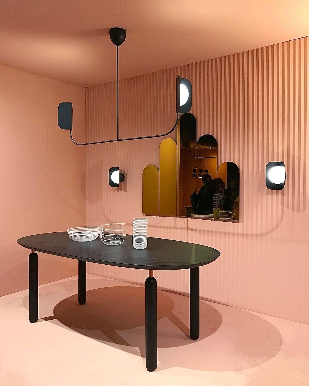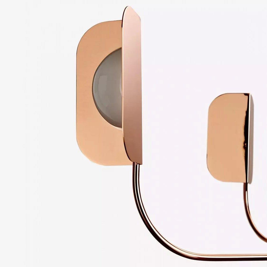 This chandelier features a distinctive structure in hand-forged iron with a polished copper finish. Its design, inspired by nature, integrates seamlessly into various interior styles, including modern and classic settings.
