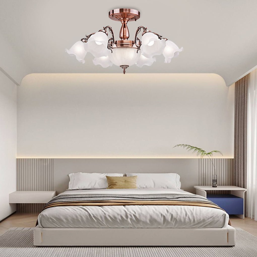 - This classic pendant lamp is made of metal and glass materials. The lamp body is treated with an electroplating process, enhancing its refined appearance and durability. The traditional flower-shaped glass lampshade offers high light transmittance, producing a bright and warm lighting effect.