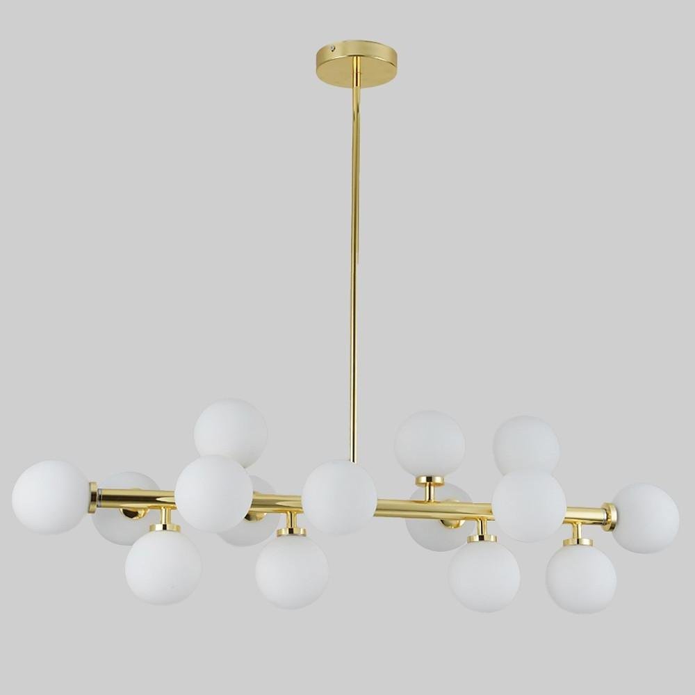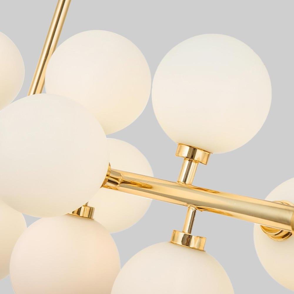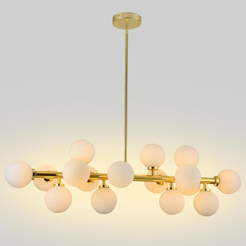 The Minihouzz 16-lamp chandelier combines glass shades with a metal body, presenting a design that is both futuristic and artistic. Featuring simple geometric lines, this hanging chandelier offers straightforward installation with an adjustable height to adapt to various room settings. It is suitable for a wide range of interior styles, including industrial, modern, farmhouse, and contemporary aesthetics.