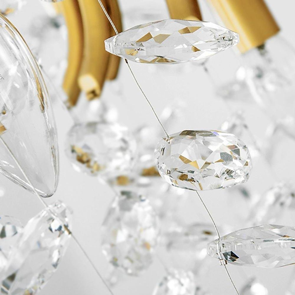 - The retro and elegant design of this crystal chandelier enhances the aesthetic of your home. Its crystal decorations create a distinctive light effect, contributing to a refined atmosphere.