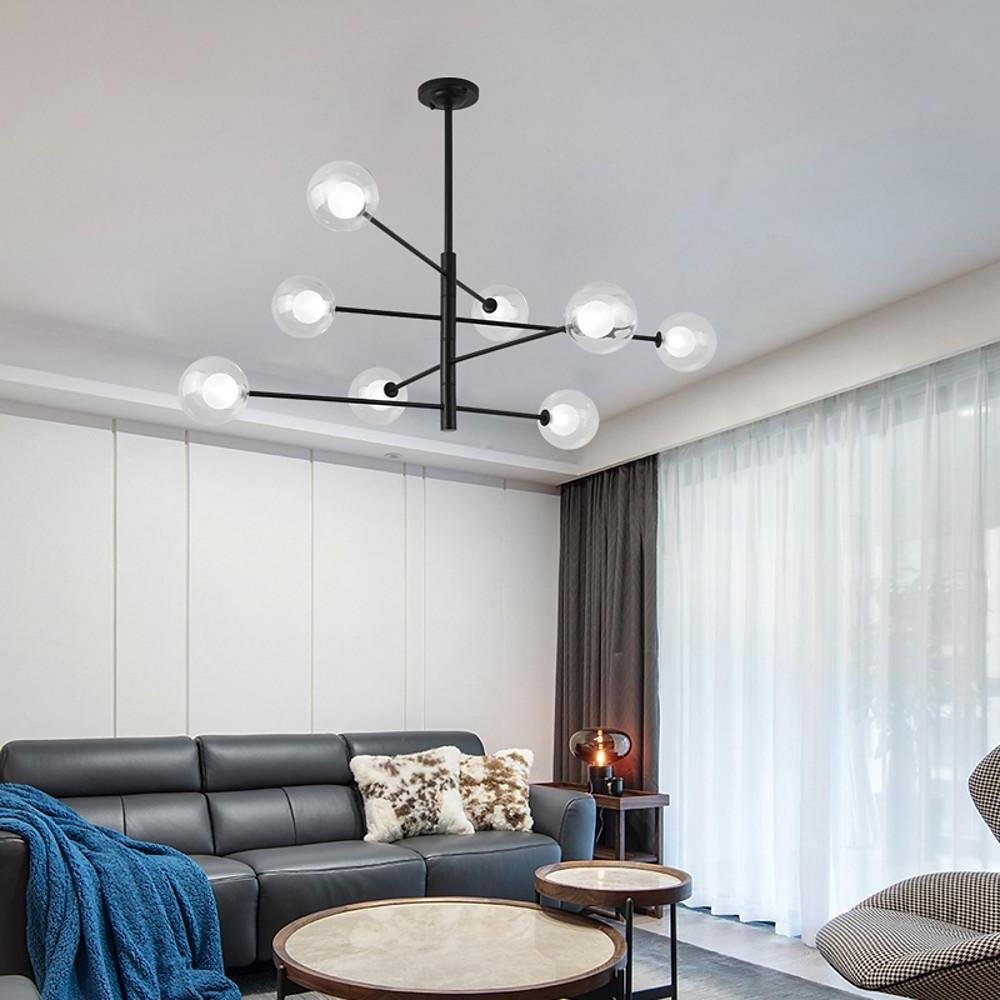 - This pendant lamp features 8 spherical clear glass shades and a black finish, offering a classic industrial retro style resembling a tree or satellite. The chandelier’s surface is treated with a painted finish for enhanced durability and rust resistance.