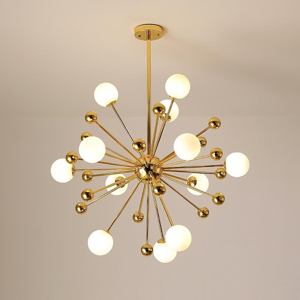 - The 12 glass lampshades and metal decorative balls of this pendant light are electroplated, ensuring a fine texture and durability.