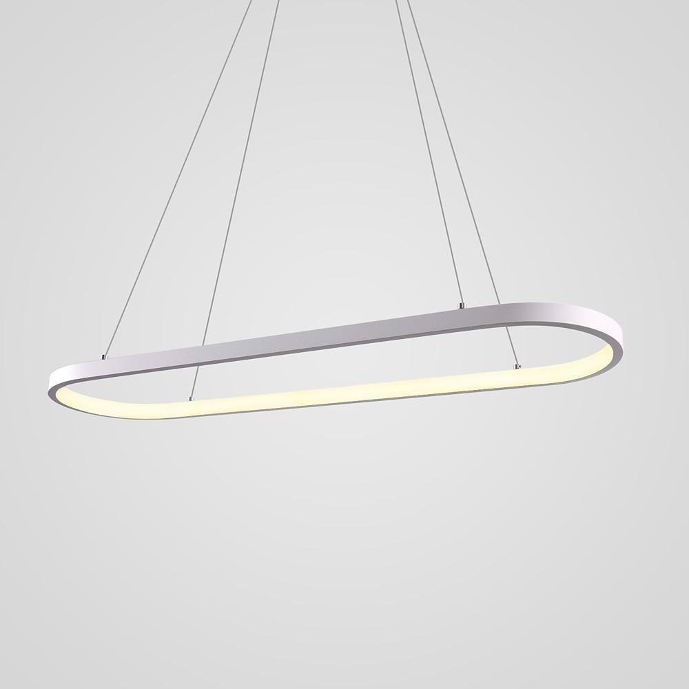 - This chandelier features a minimalist rounded rectangular ring design, offering a distinctive aesthetic. Its design complements various contemporary decorative styles, suitable for areas such as the dining room, living room, kitchen, bedroom, and foyer.