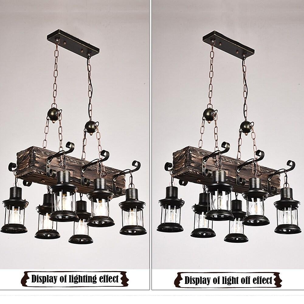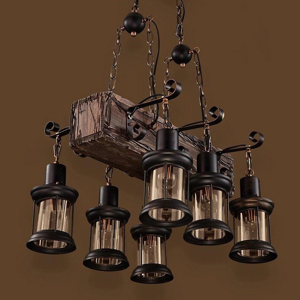 The Minihouzz Antique Wood Stand Pendant Light offers a distinctive retro aesthetic for various interior spaces. This chandelier design blends decorative styles, showcasing classic elegance through its vintage wood lamp holder, lantern glass shade, and robust iron pendant chain. It provides ample illumination suitable for living rooms, dining rooms, hallways, foyers, bedrooms, meeting rooms, and offices.