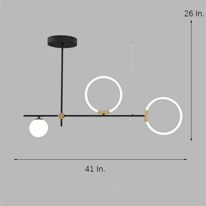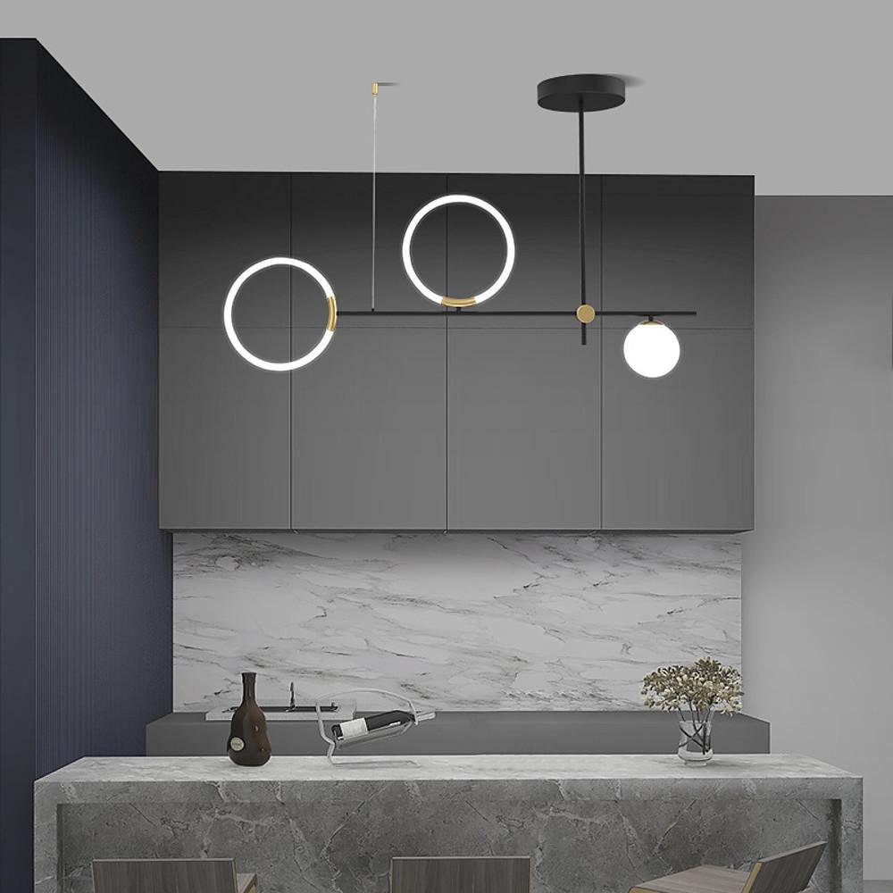 - The modern LED pendant light incorporates classic geometric circular and linear designs, providing a distinctive aesthetic for your home.