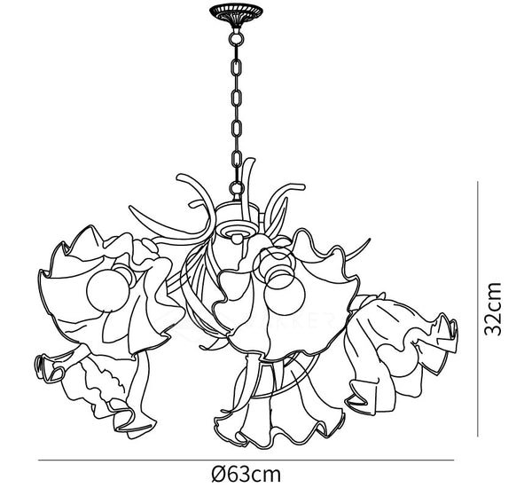 - 5 Heads: Dia 63cm x H 32cm / ∅ 24.8″ x H 12.6″