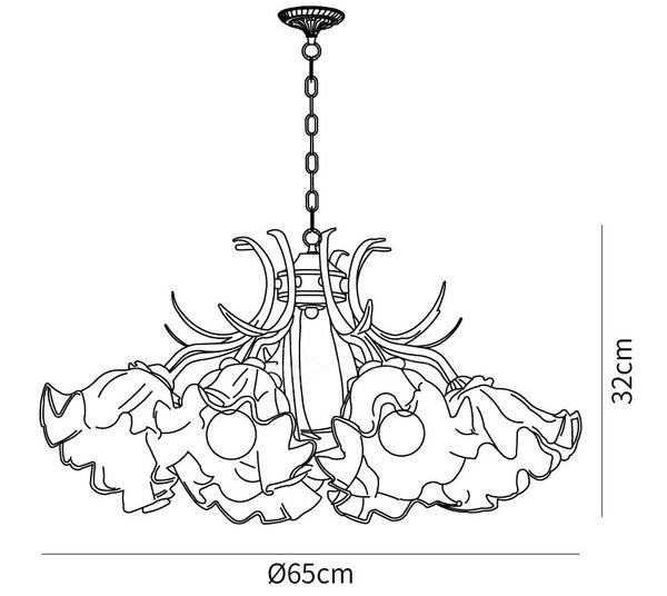 - 8 Heads: Dia 65cm x H 32cm / ∅ 25.6″ x H 12.6″