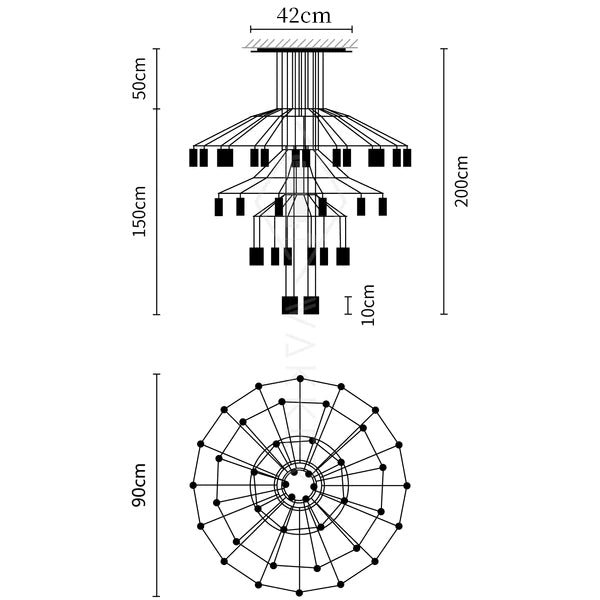 The Lines Chandelier light fixture offers a contemporary reinterpretation of the traditional suspended lighting fixture through a simplified design approach. This design bestows a delicate and distinct conceptual character to an ethereal lighting piece.