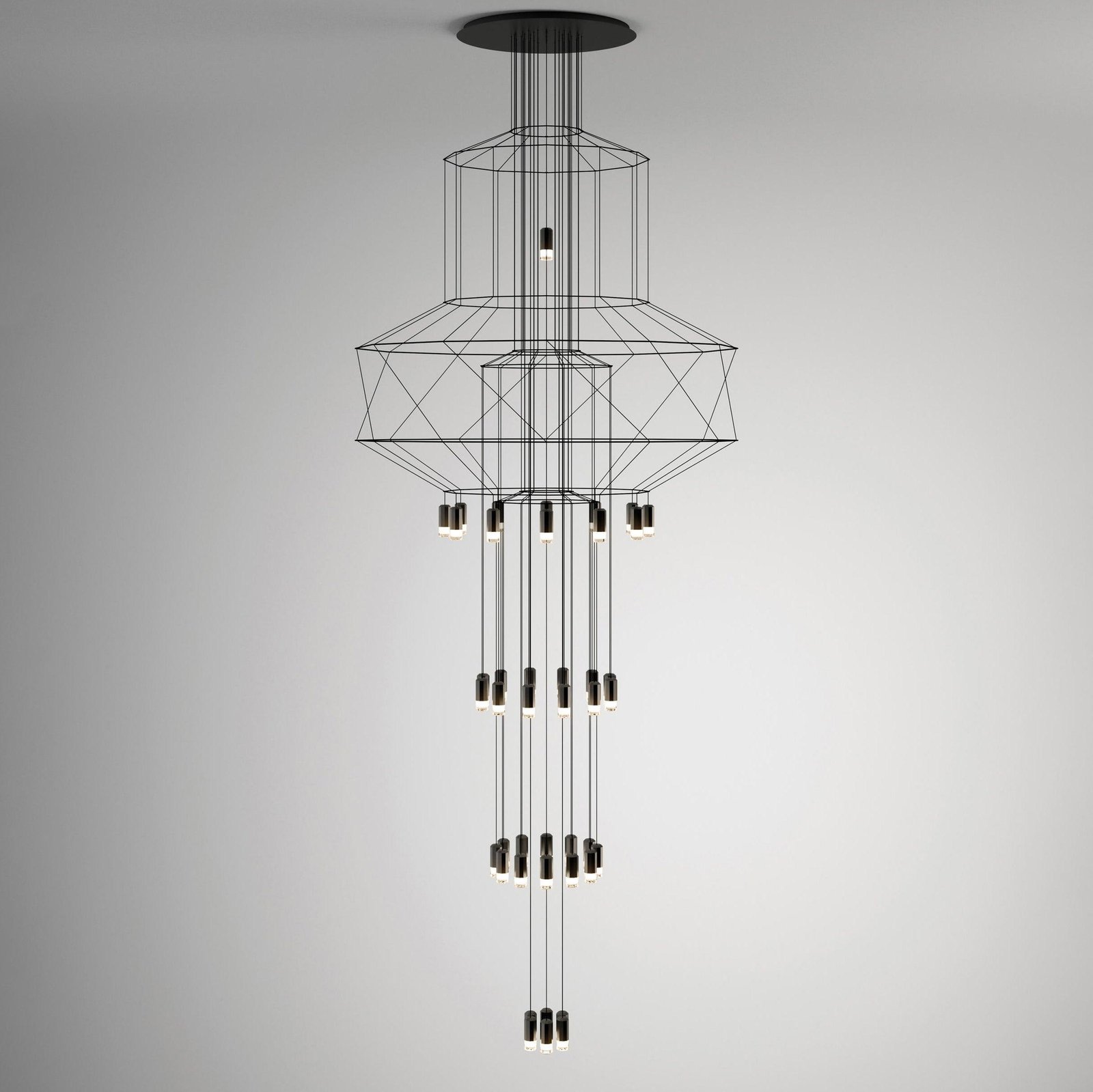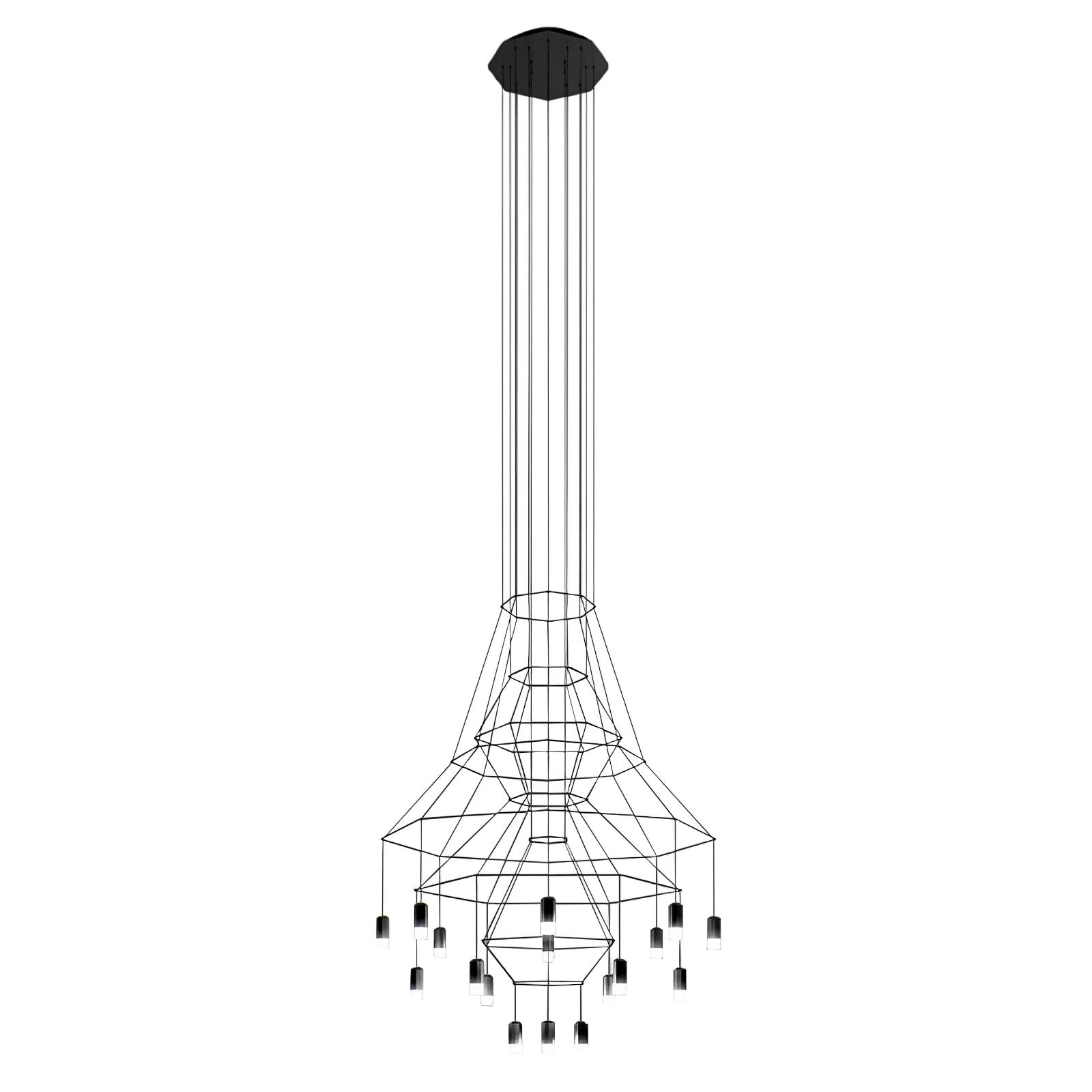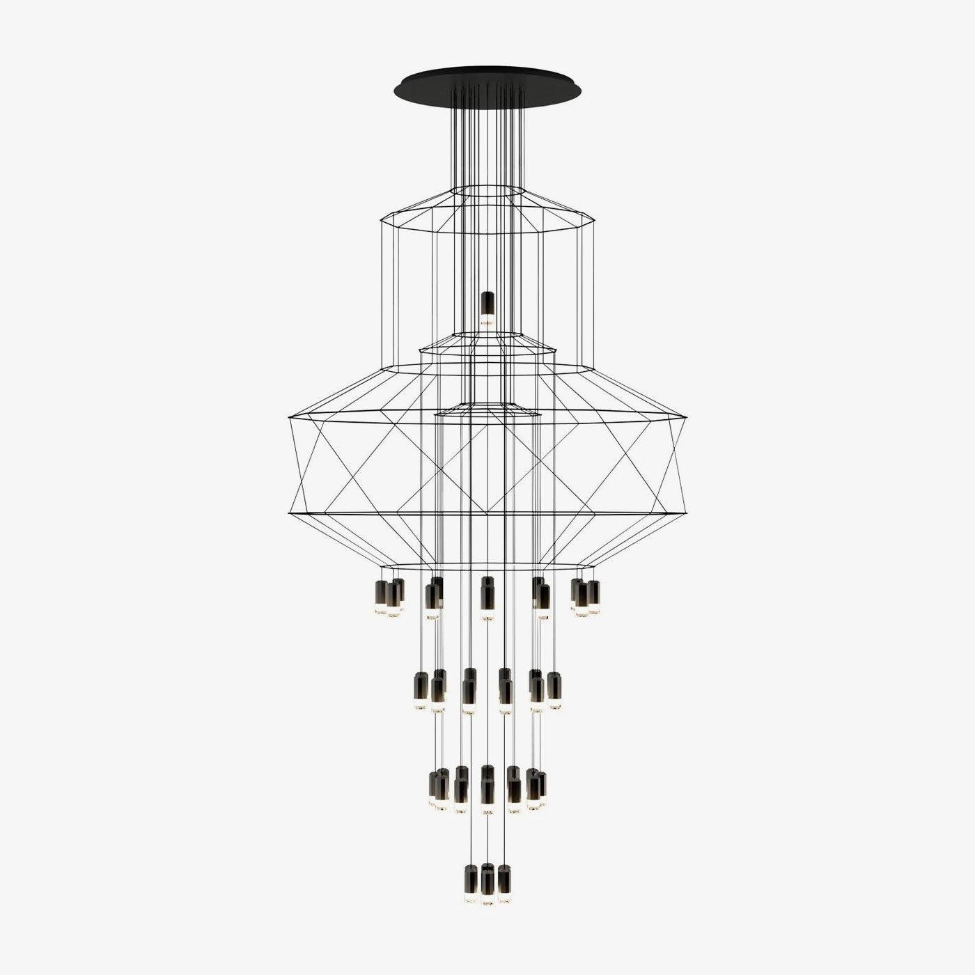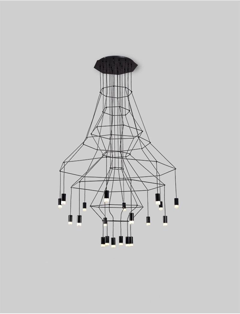 The Lines Chandelier is constructed from black electrical cable and features a series of 3-watt LED terminals. This collection includes models composed of 20, 43, and 46 diffusers.
