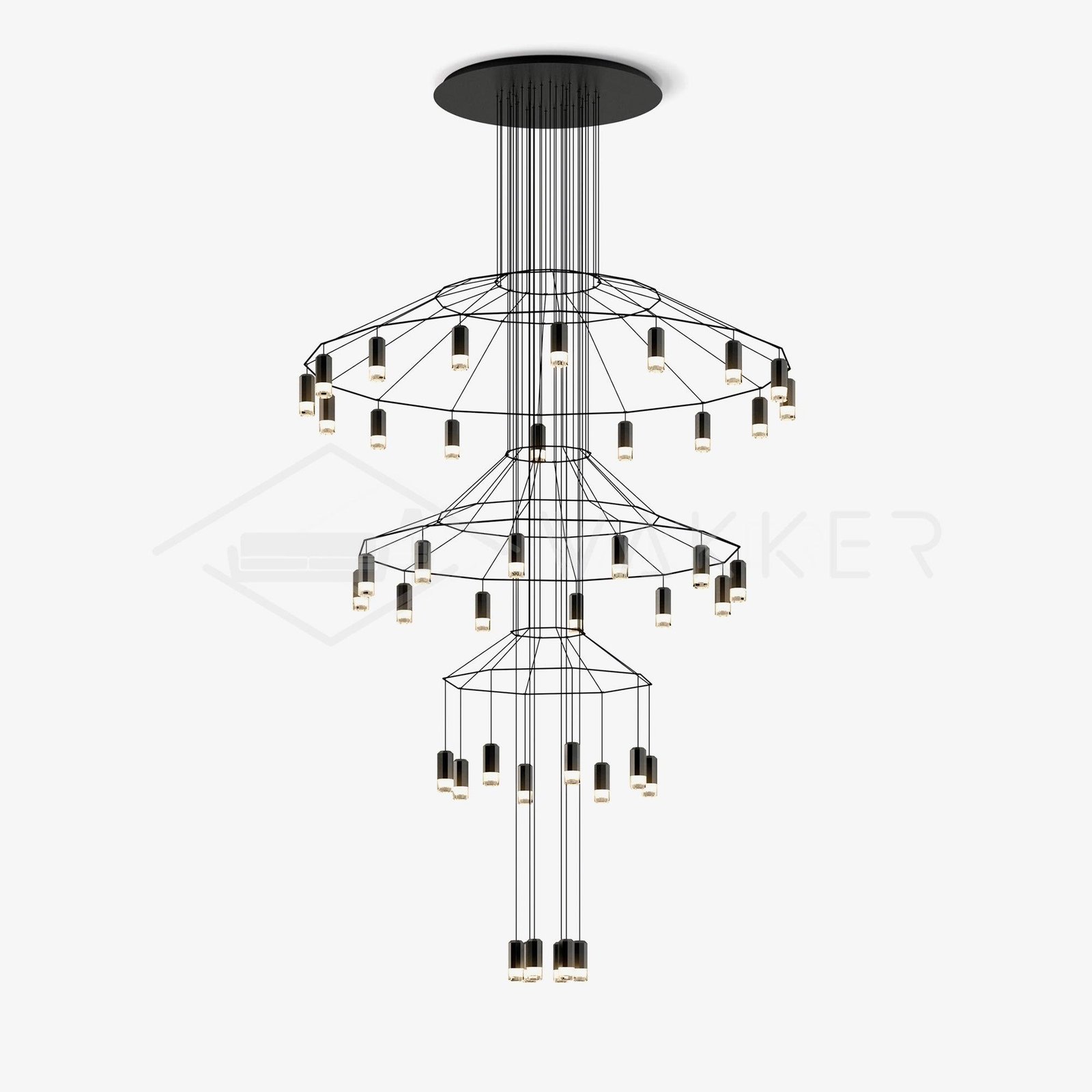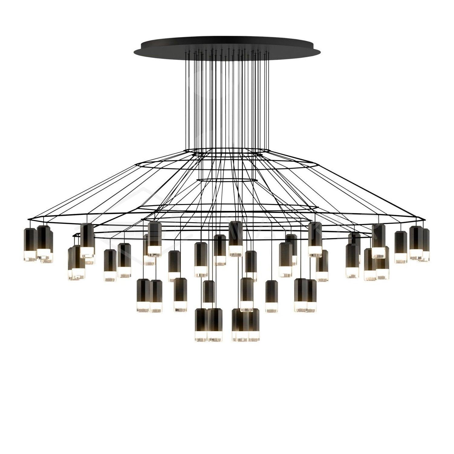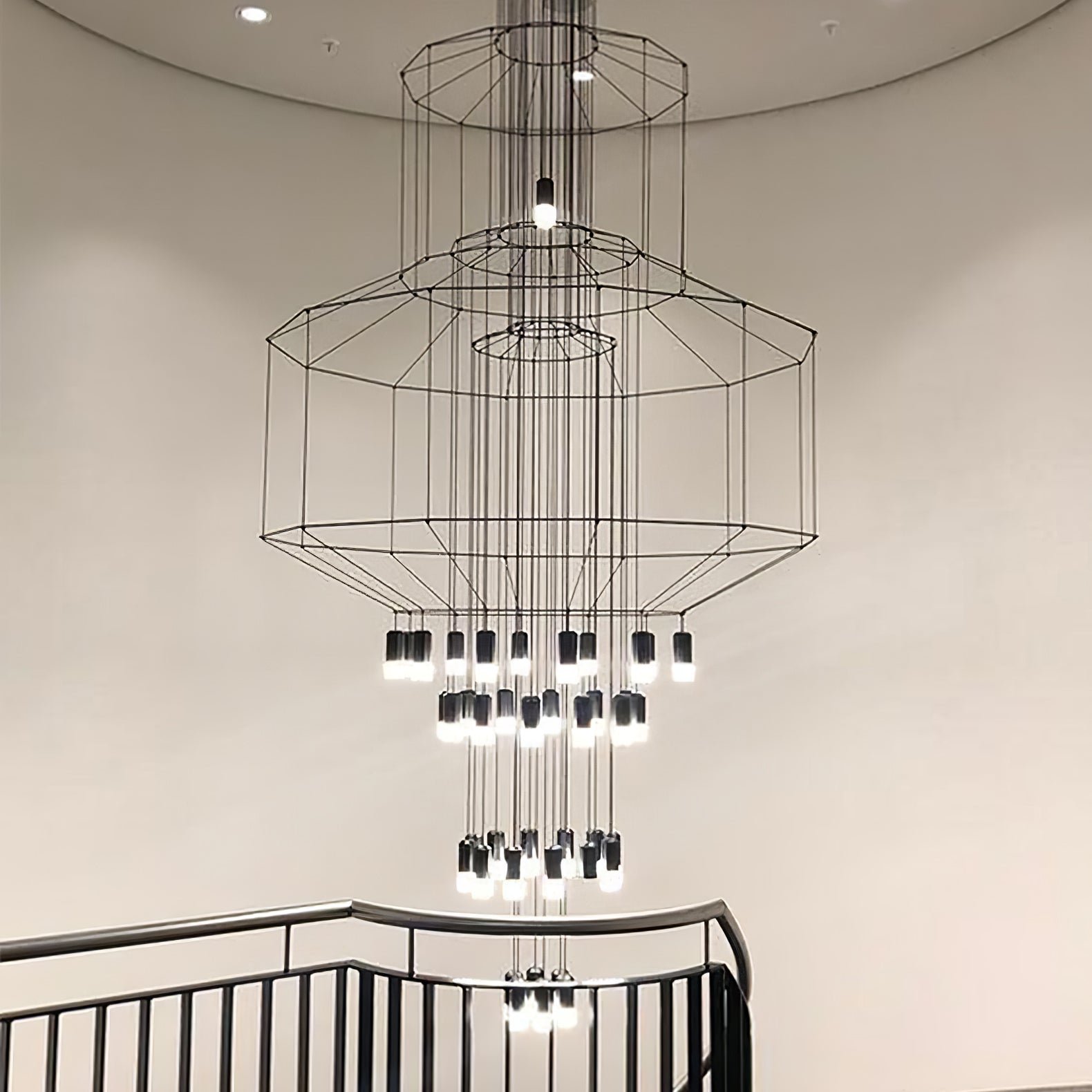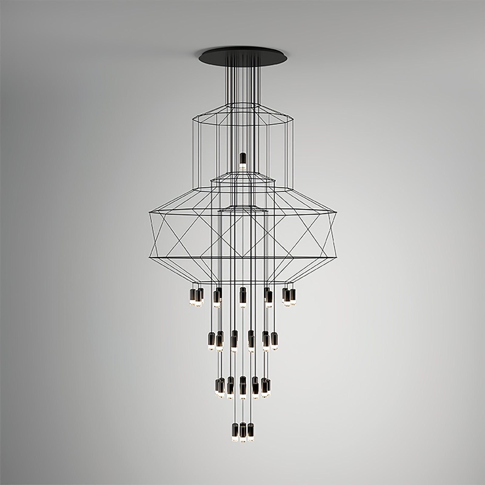 The Lines Chandelier light fixture offers a contemporary reinterpretation of the traditional suspended lighting fixture through a simplified design approach. This design bestows a delicate and distinct conceptual character to an ethereal lighting piece.