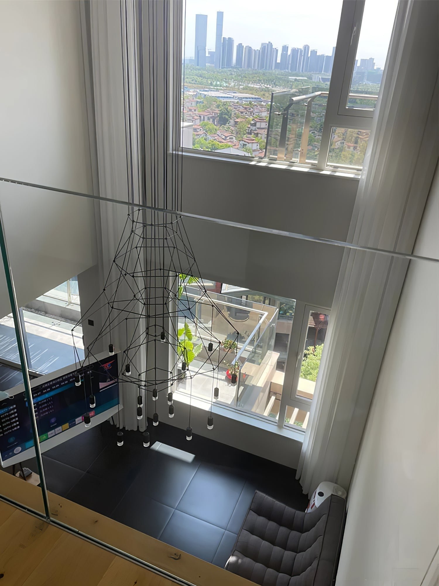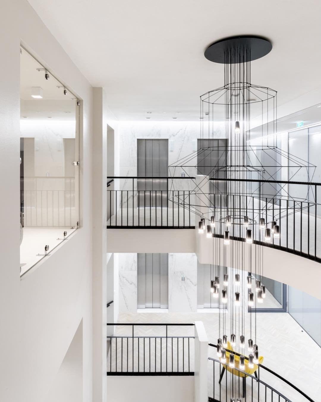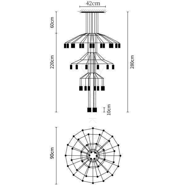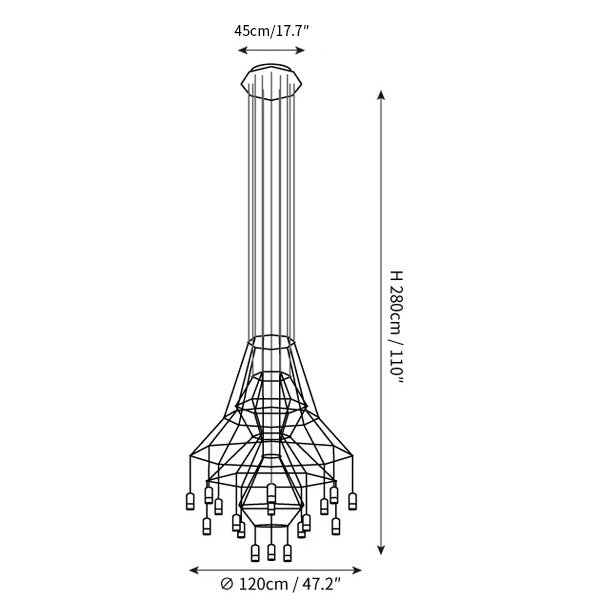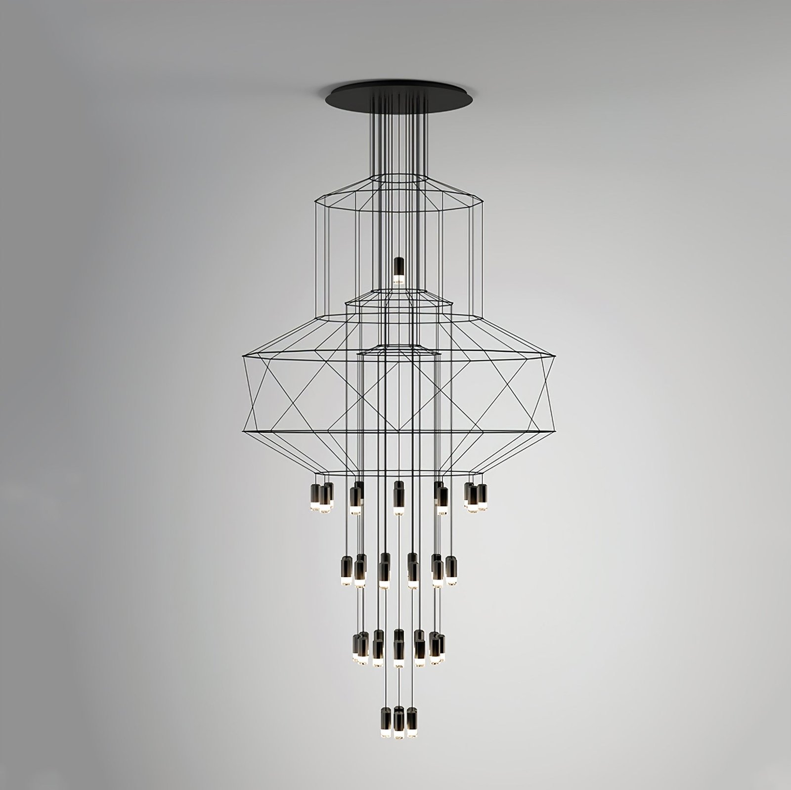 The Lines Chandelier light fixture offers a contemporary reinterpretation of the traditional suspended lighting fixture through a simplified design approach. This design bestows a delicate and distinct conceptual character to an ethereal lighting piece.