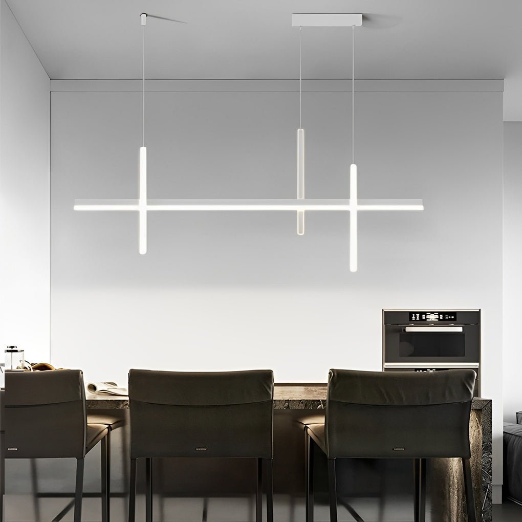 • This long strip pendant light features a modern artistic design, enhancing interior spaces with its contemporary aesthetic.