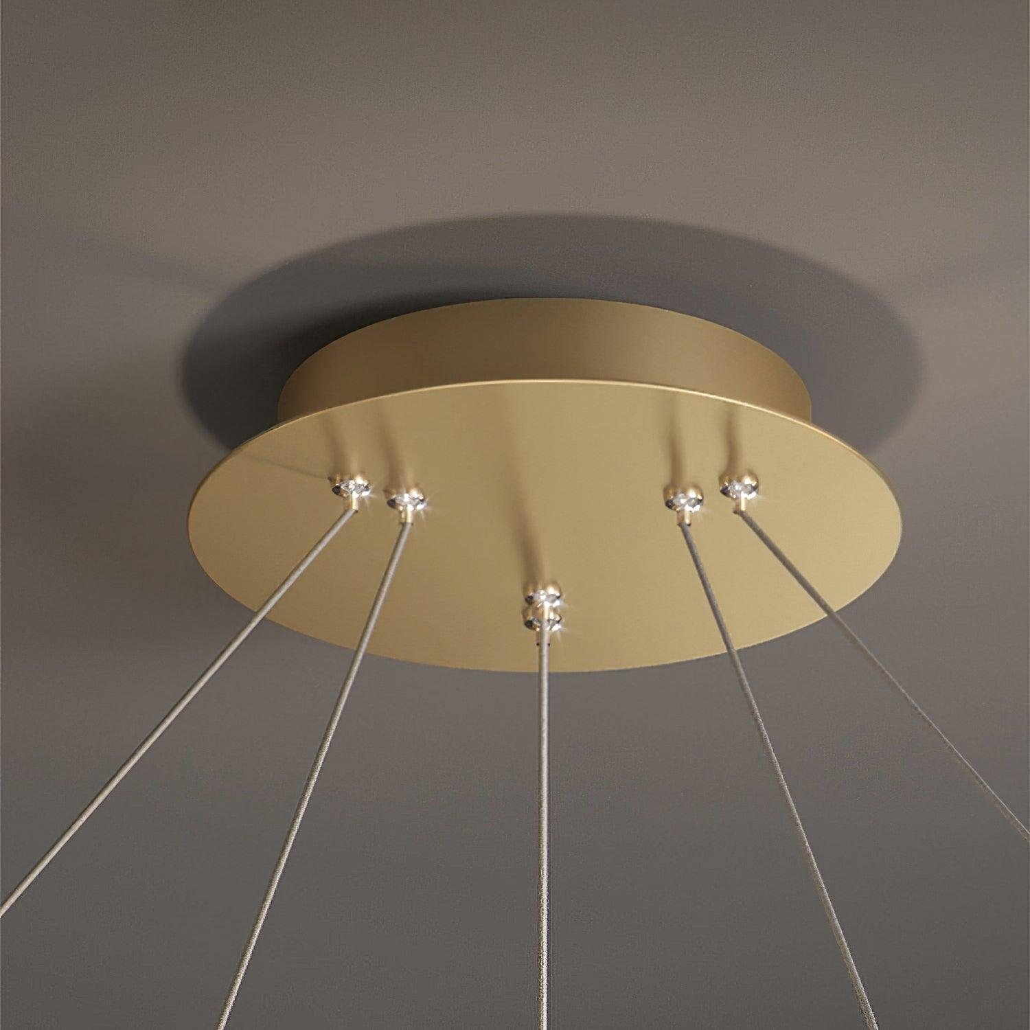 The Luxury Circle Crystal Chandelier is a lighting fixture crafted from crystal and metal materials. This chandelier is designed to illuminate and enhance interior spaces.