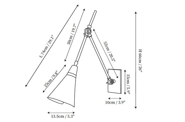 The Minhouzz Magari Wall Lamp embodies French and Italian mid-century modernism. Its distinctive edge-angled lampshade features a pronounced beveled edge at the base. Designed for versatility, it includes two articulating joints and a swivel mechanism, allowing for flexible positioning and rotation to direct light as needed. This adjustable light offers both functional illumination and a timeless design.