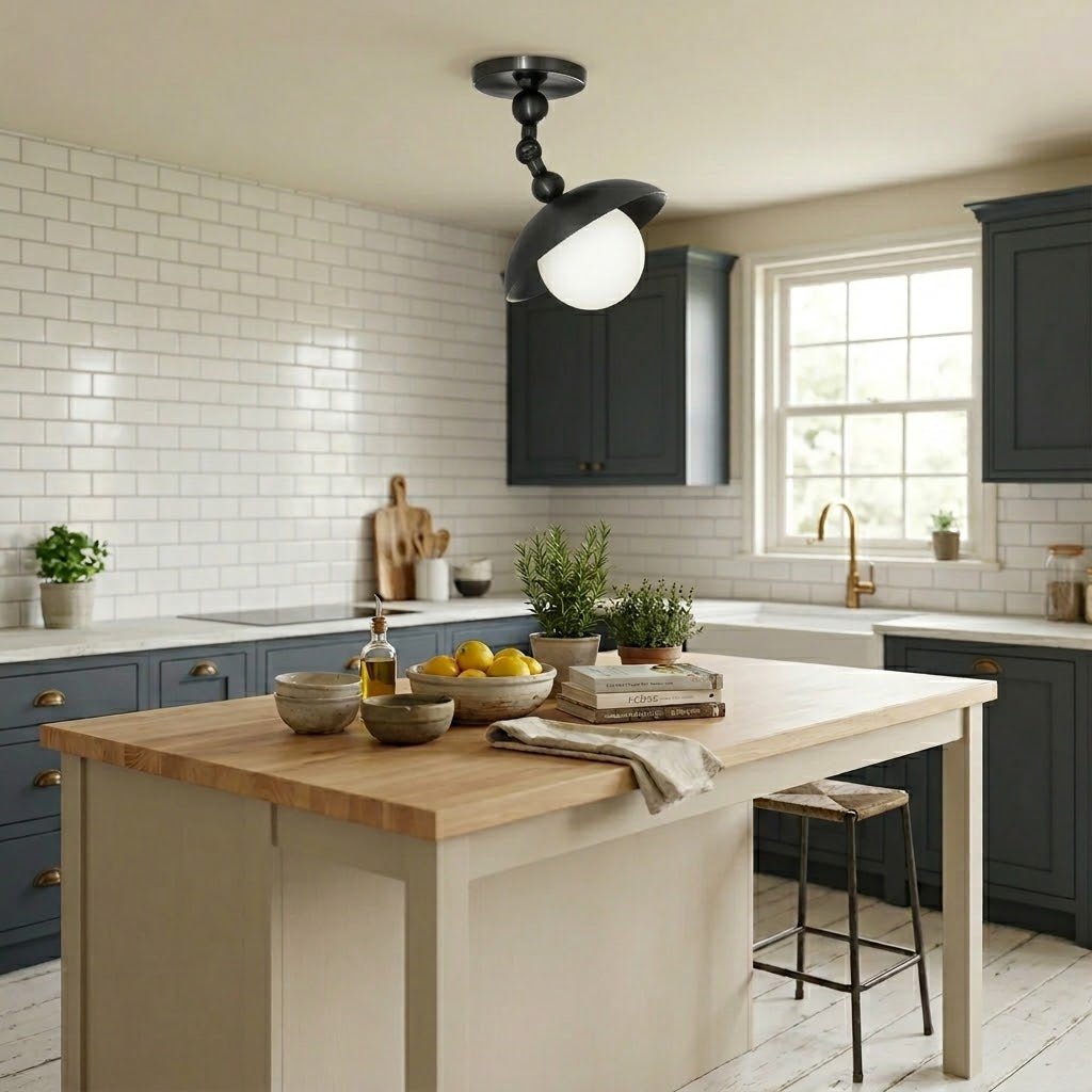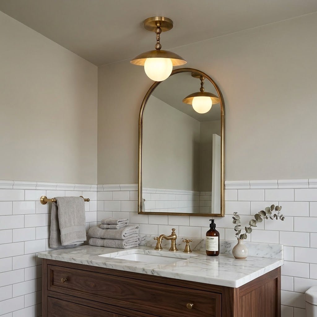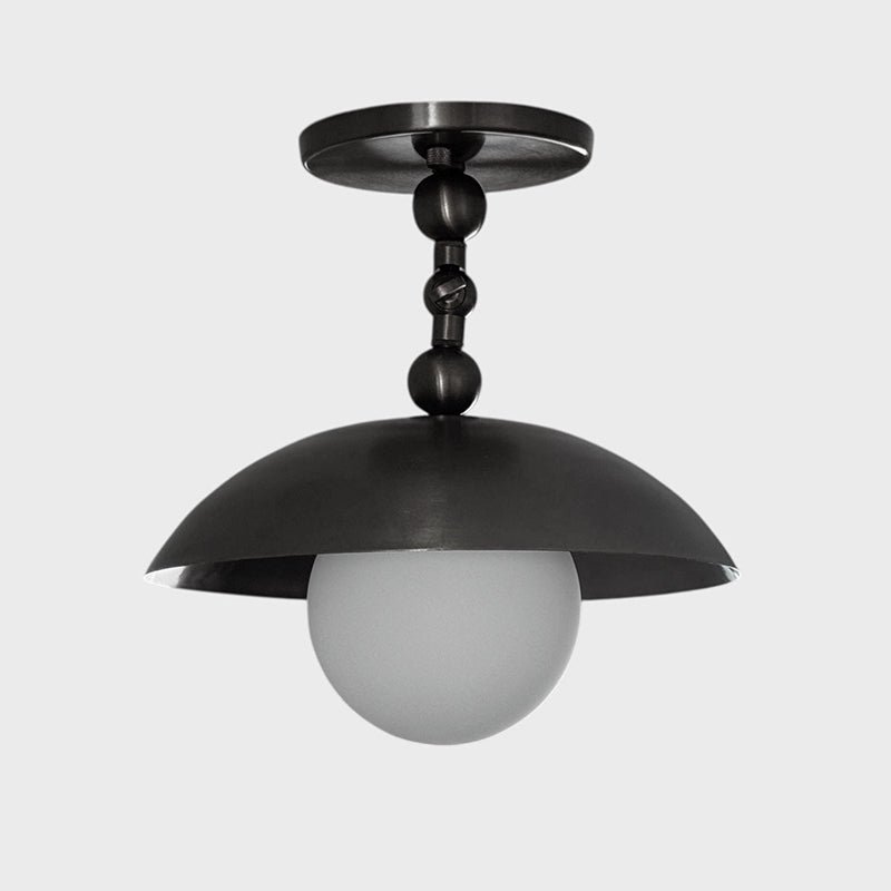 This handcrafted Mid-Century Modern semi-flush mount ceiling light is designed to add vintage charm and contemporary warmth to any space. Featuring a hand-finished brass dome canopy paired with a smooth white glass globe, this ceiling fixture blends minimalist design with a bold statement.