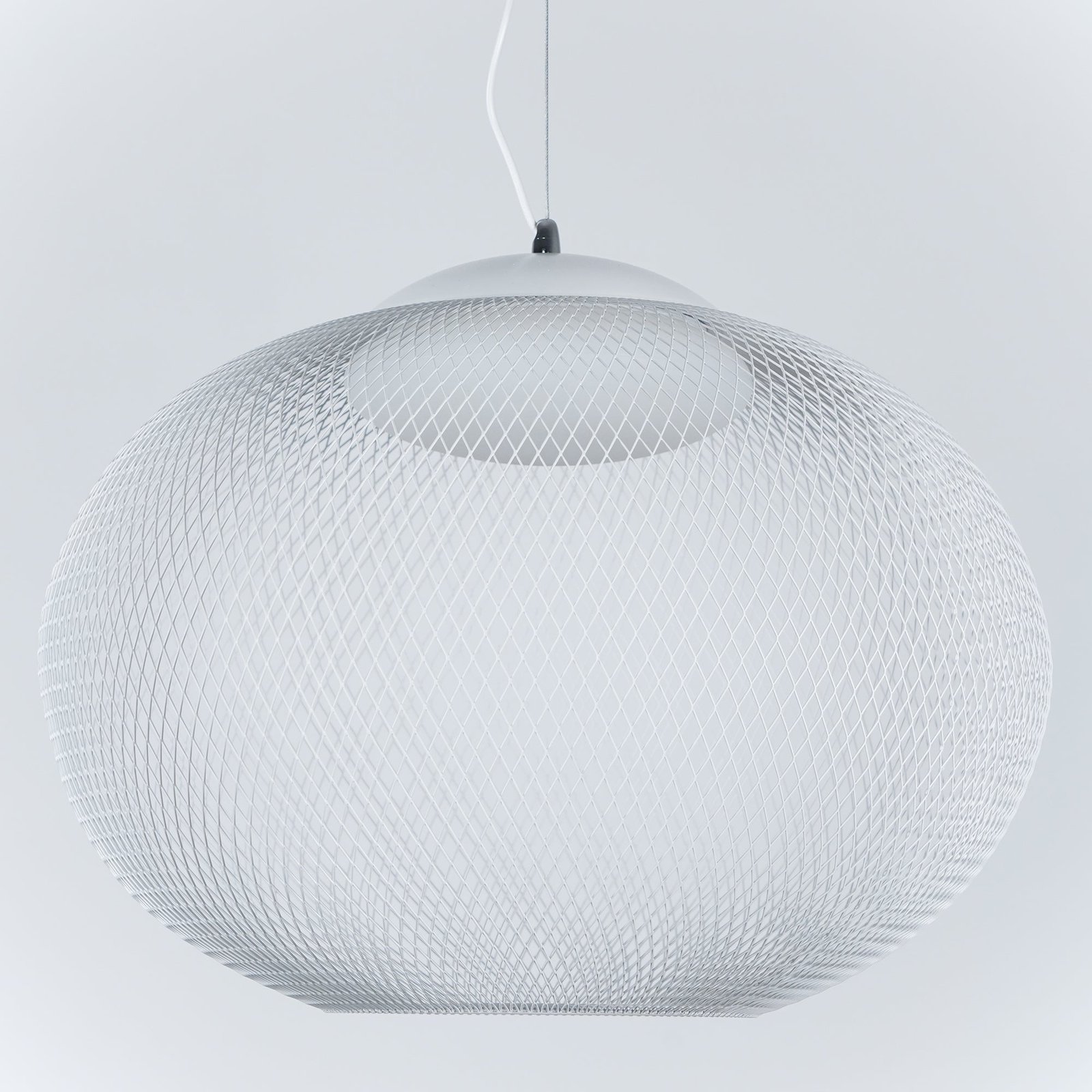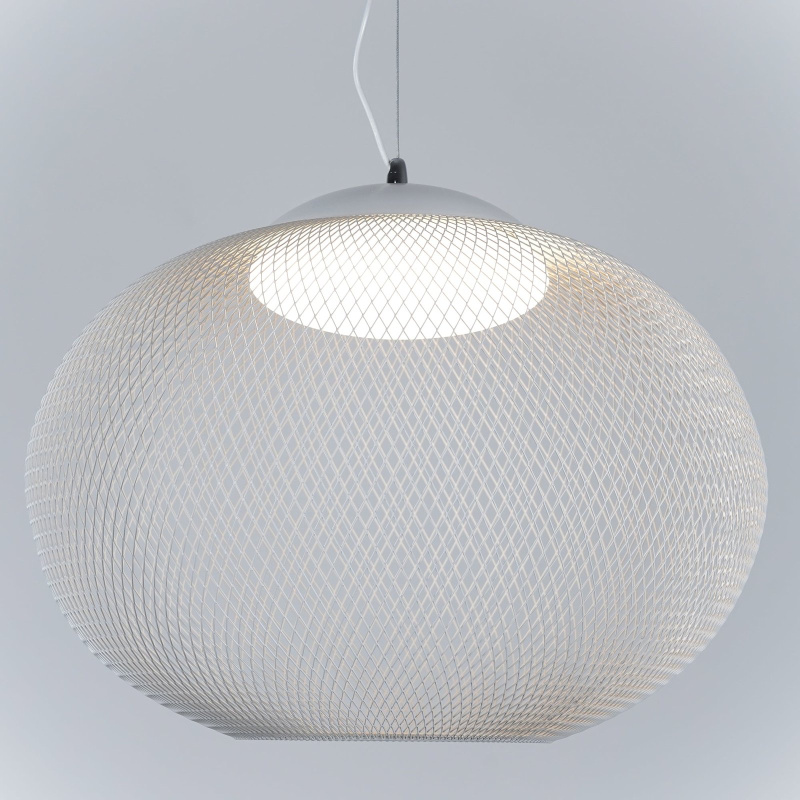 The Metallic Meshwork Pendant Lamp features a unique latticed pattern for gentle light diffusion. Its elegant white or black wiring emits subtle hues when illuminated, creating an alluring atmosphere. This pendant lamp enhances any space with its subtle and stylish illumination.