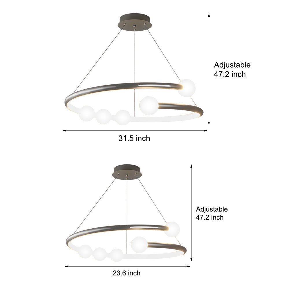 This chandelier features a construction of iron, aluminum, and soft silicone materials, designed for durability. Its timeless design complements various interior styles. Available in black and white finishes, this hanging ceiling light utilizes energy-efficient LED light sources. It offers three selectable color temperatures, providing adjustable lighting for diverse ambiances and usage scenarios such as living rooms, dining rooms, and bedrooms.