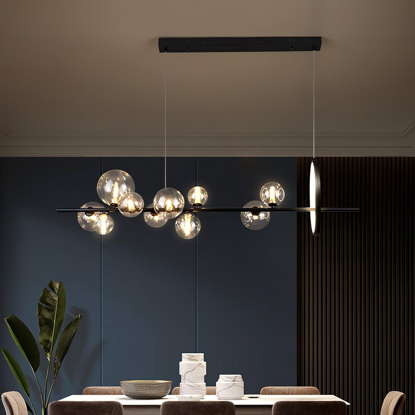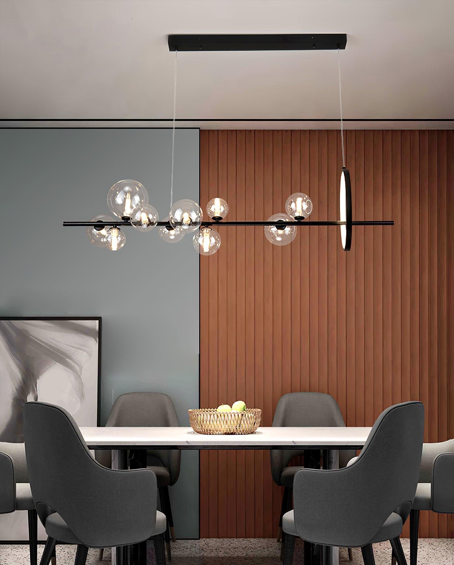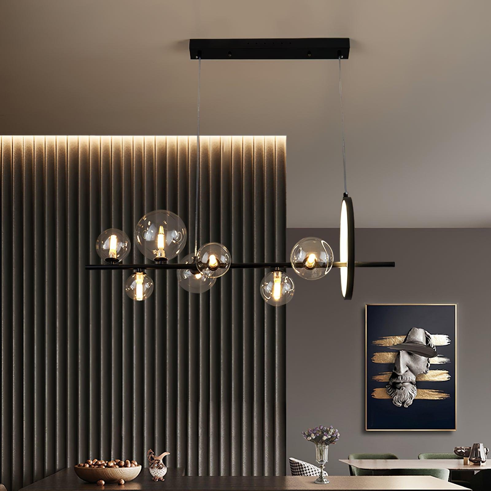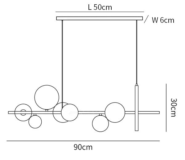 When it comes to lighting in the Scandinavian style, the reduced form and simple design are precisely the main features of the lamps. Our Glass Bubble Nordic Chandelier has striking glass balls as the dominant detail, which brings a modern design to any living room. The light combines a thin luminous LED circle and linear elements on which the glass lampshades are located.