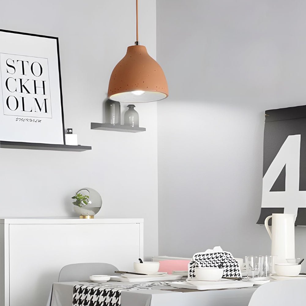 This pendant light features a sleek, resin bowl-shaped shade, offering contemporary illumination. Its minimalist, upside-down bowl design is available in gray, white, and orange, providing versatile options for diverse interiors. The cord suspension method contributes to its refined appearance, and the hanging cord length is adjustable to suit different ceiling heights, ensuring a clean and modern aesthetic.