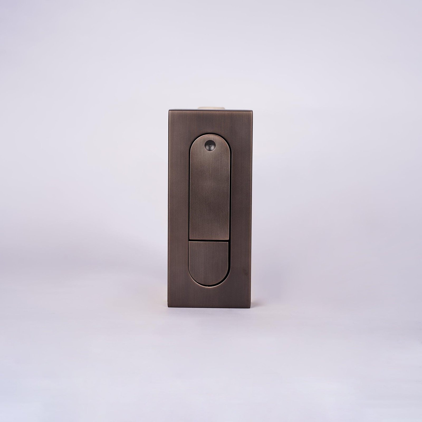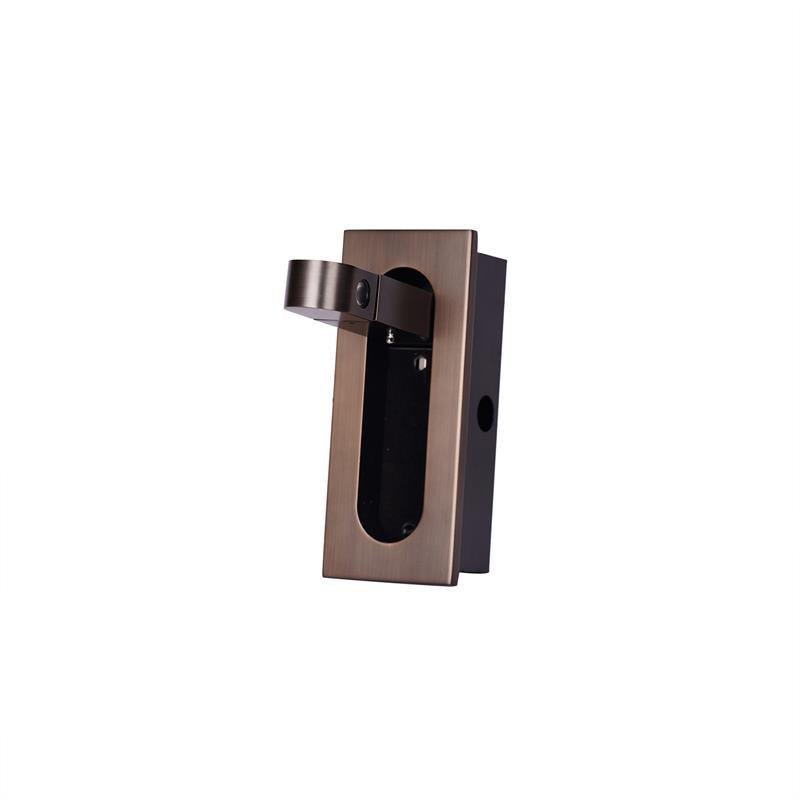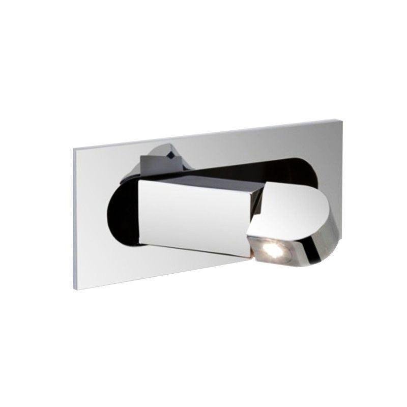 This fixture employs a recessed design where the lamp body sits flush within the backing plate. The light is activated by pressing the end of the fitting, which deploys the lamp body and engages the internal switch mechanism.