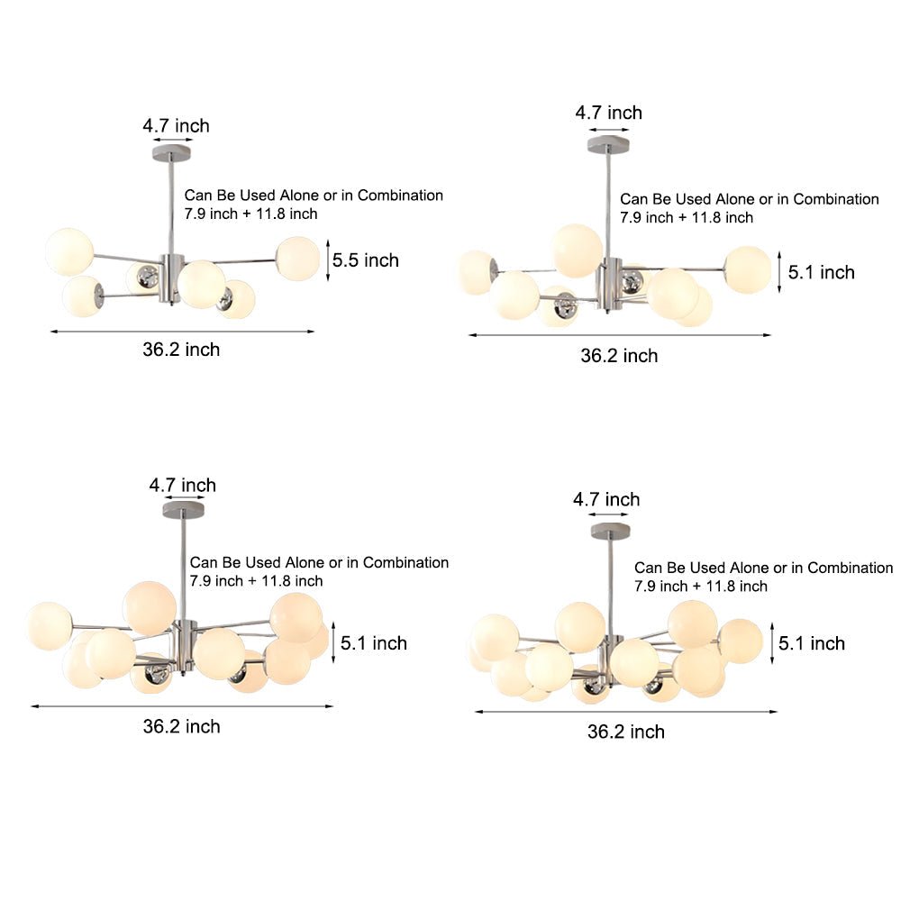 - This chandelier is available with either a milky white glass lampshade or a transparent glass lampshade, offering versatility to complement various home styles.