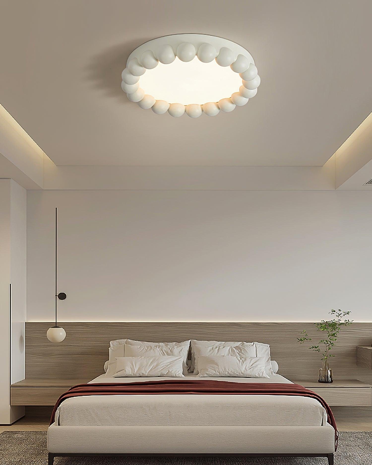 The Molina Ceiling Light features a modern design, crafted from resin with an acrylic diffuser. This lighting fixture is ideal for various indoor environments, including living rooms, bedrooms, closets, and home offices. It provides illumination that minimizes shadows and is designed to be easy on the eyes.