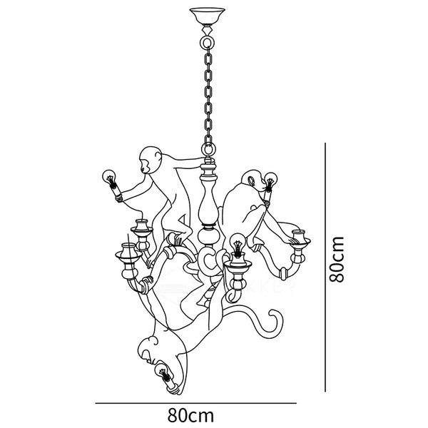 The Monkey Chandelier brings a unique and playful illumination to any space. Featuring three monkeys integrated into its design, this chandelier offers a distinctive aesthetic. Its white finish and unconventional structure make it a focal point in rooms designed for individuality.