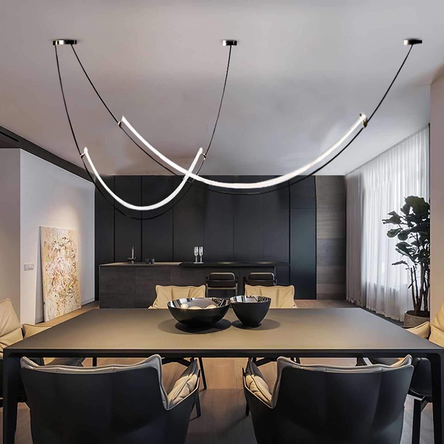 This MINIHOUZZ Neon Pendant Lamp offers a modern aesthetic, featuring an integrated LED line light designed in a neon lamp style. Its integrated LED technology ensures long-lasting illumination without the need for bulb replacements.