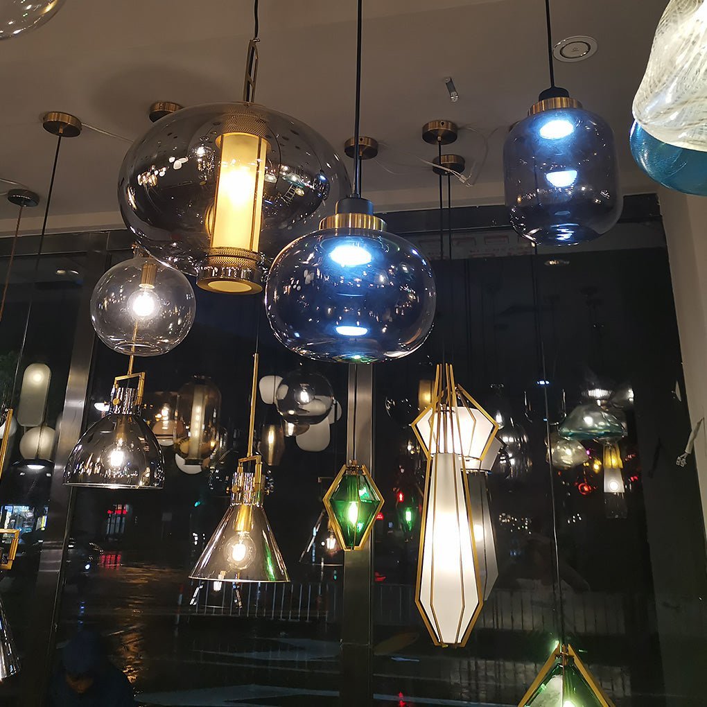 Enhance your space with this distinctive glass pendant light, featuring an elegant modern industrial retro design. Its unique shape creates engaging light and shadow patterns, contributing to a distinctive room ambiance. This glass pendant light is suitable for various interior settings, including kitchens, dining tables, stairwells, basements, bathrooms, and commercial areas, providing bright, warm illumination.