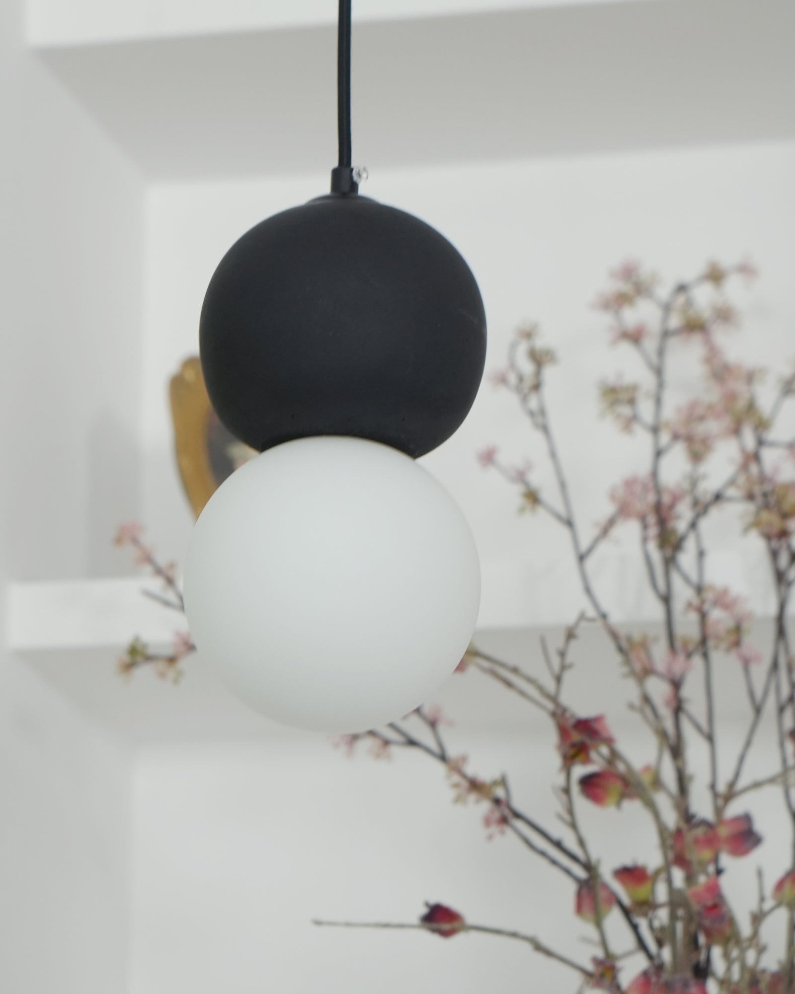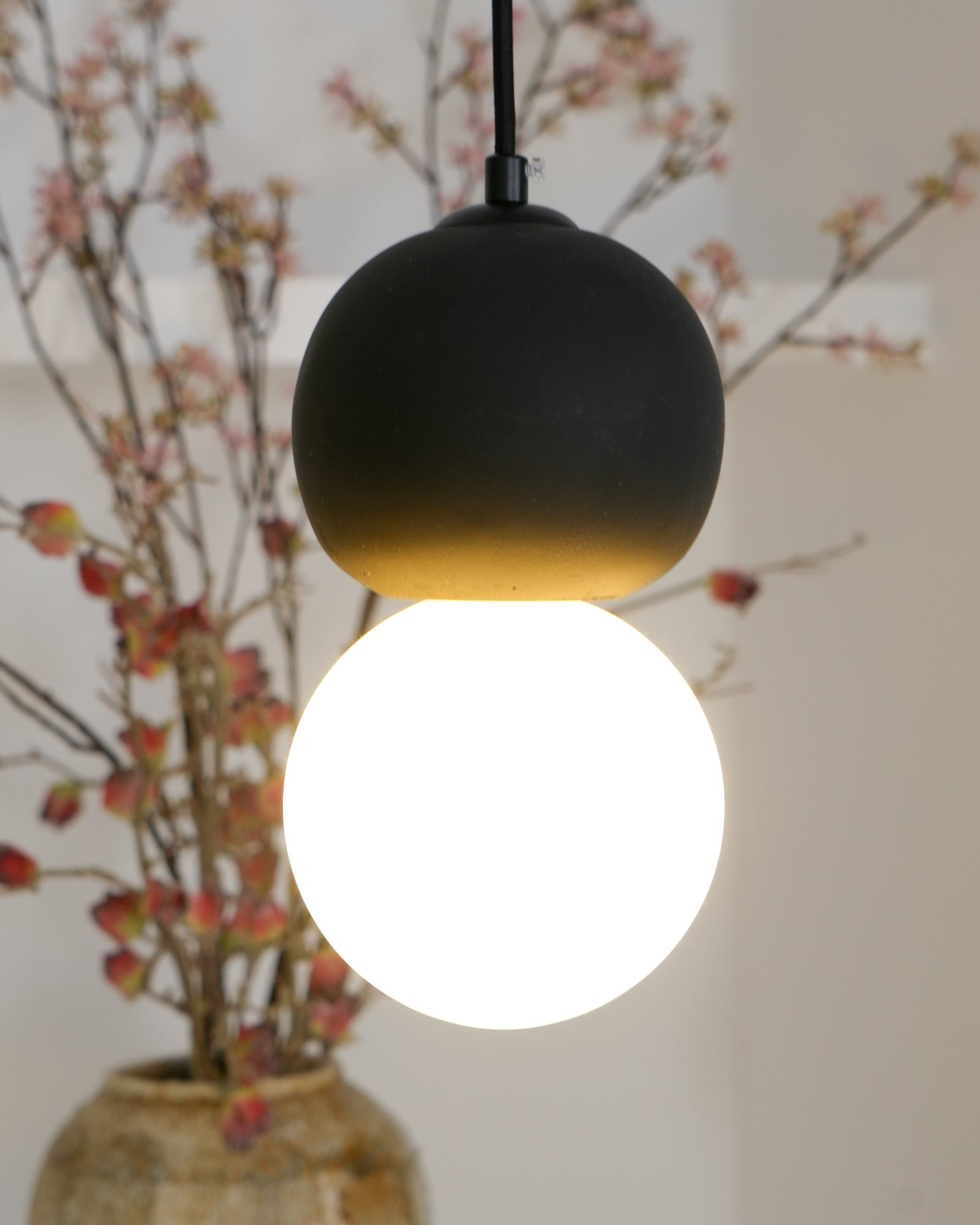 Geometry in its purest form. The Origo lighting fixture embodies contrasting essences, mirroring volcanic rock and an opal glass diffuser. This design explores the interaction of light, where illumination highlights the texture of the volcanic rock, revealing its relief and contour. The sober and logical combination of these materials creates a refined relationship between light and composition. Balance is expressed through a timeless piece, conveying both lightness and heaviness. Spheres function as a double geometry, reflecting positive and negative spaces, thereby reinforcing the fundamental relationship between light and shadows.