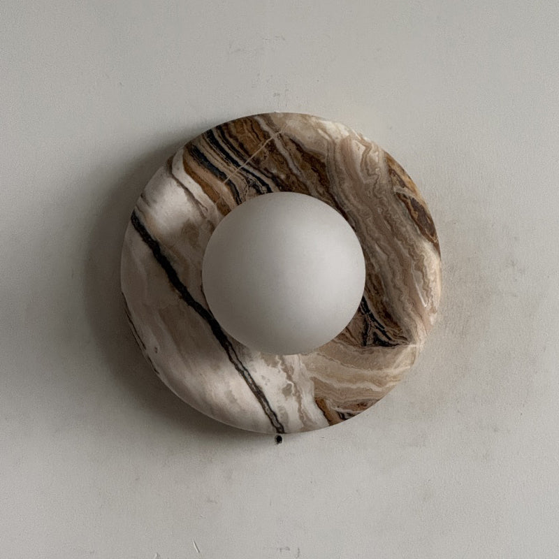 Stone Selection Notice: This wall sconce is crafted from natural stone, and each piece is unique in its color and veining. Please note that marble patterns vary by product, and the item received will feature its own distinct characteristics.