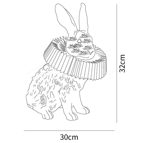 The MINIHOUZZ Rabbit Table Lamp features ruffle collar details integrated into its animal molding design. Light streams through the paper shade, highlighting the subtle rabbit fur texture. Available in three distinct postures, this rabbit lamp enhances interior spaces with its unique aesthetic.