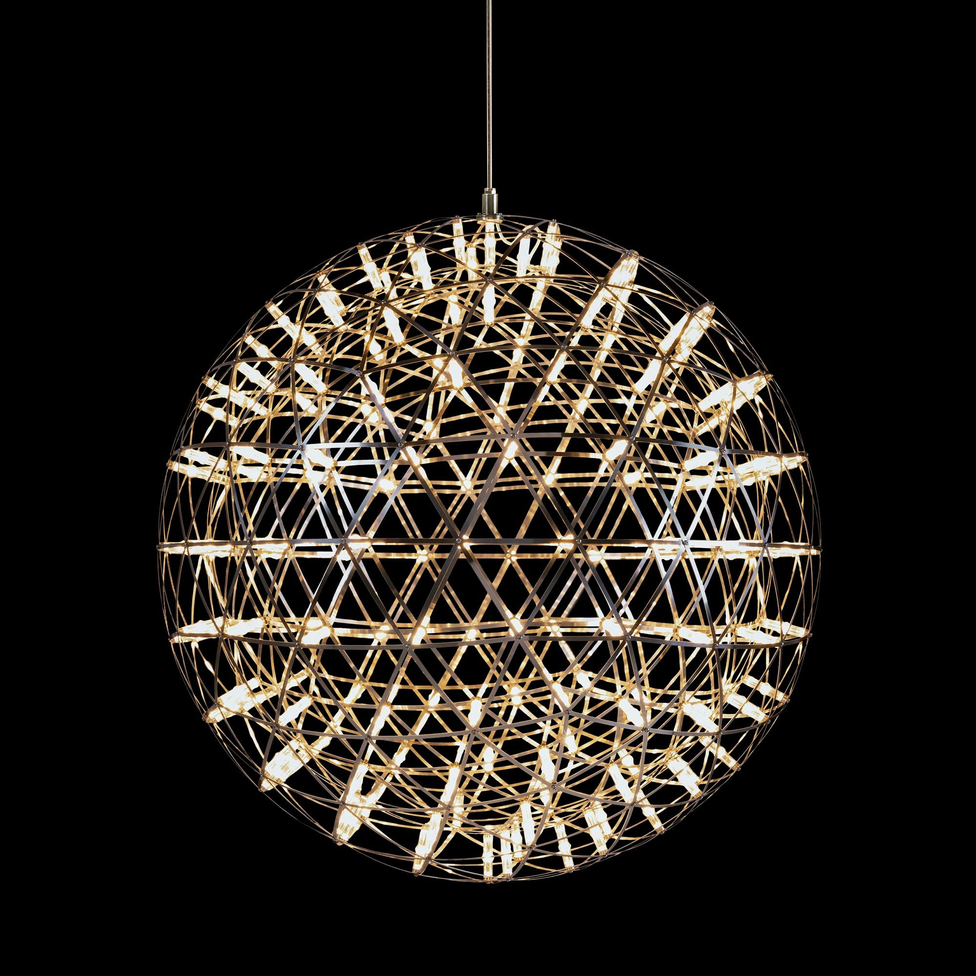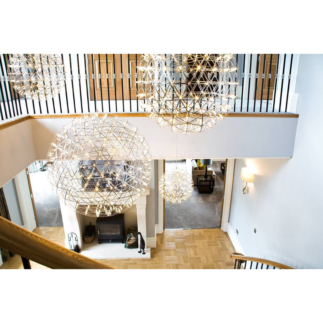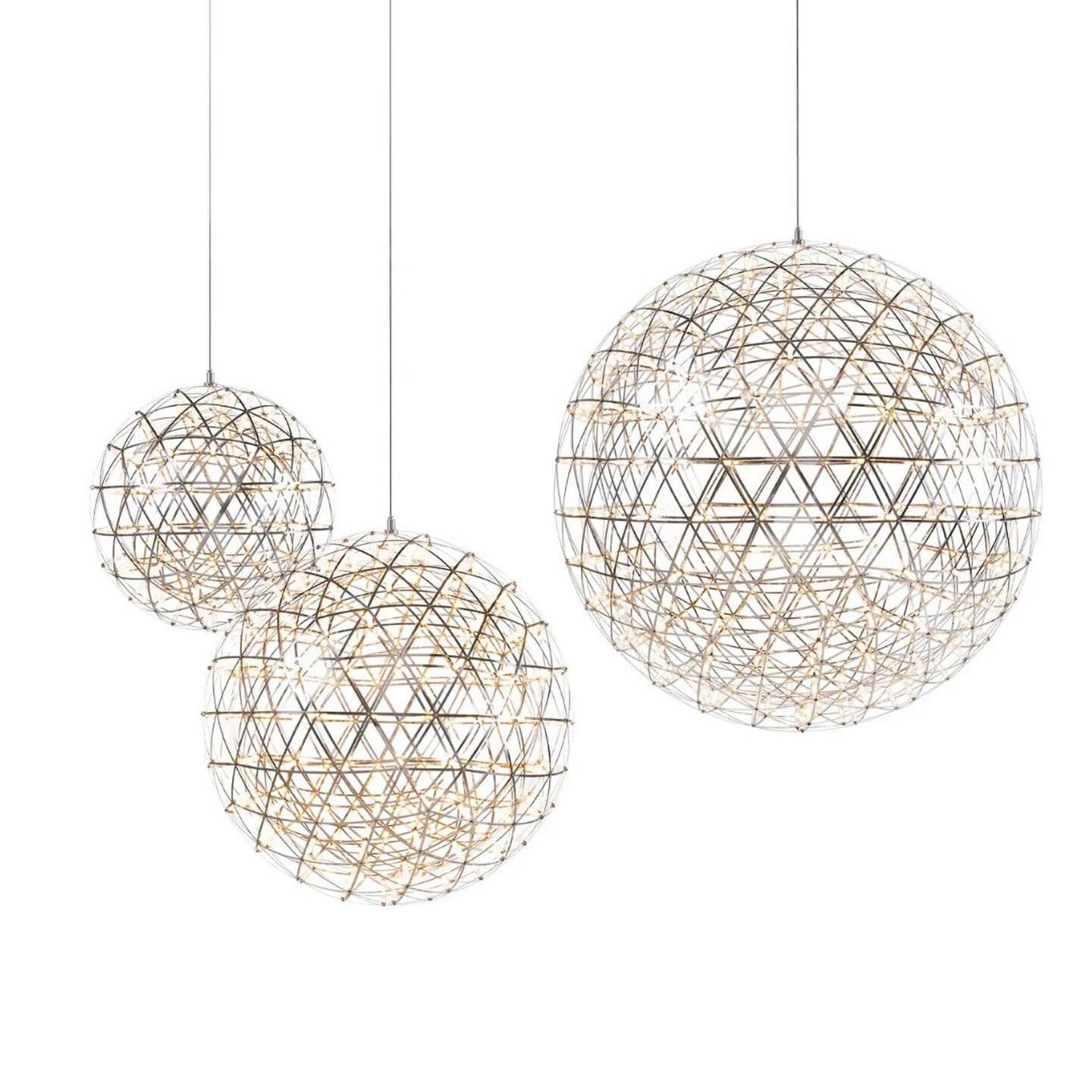 Experience the beauty of mathematical perfection with this spherical pendant light. Inspired by geodesic structures and celestial patterns, these spheres of LED lights bring the starry night sky into your home. Expertly designed for a scientifically precise and stunning addition to any space.