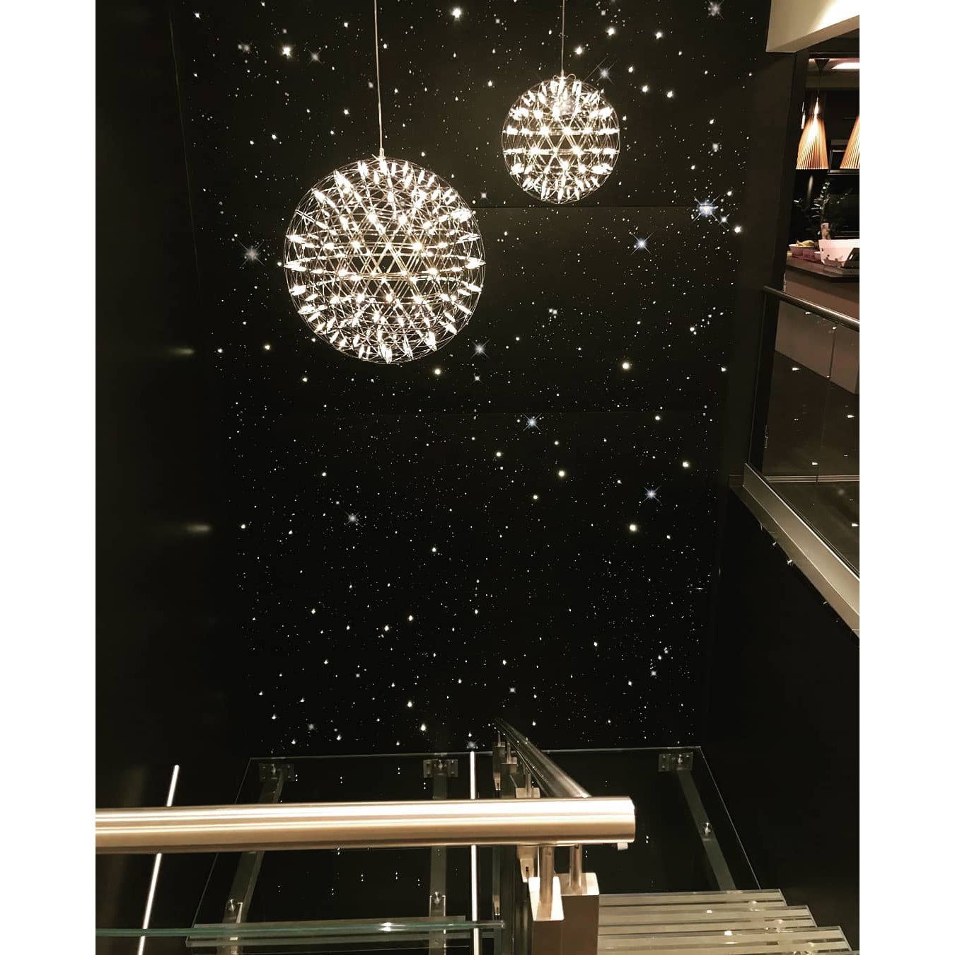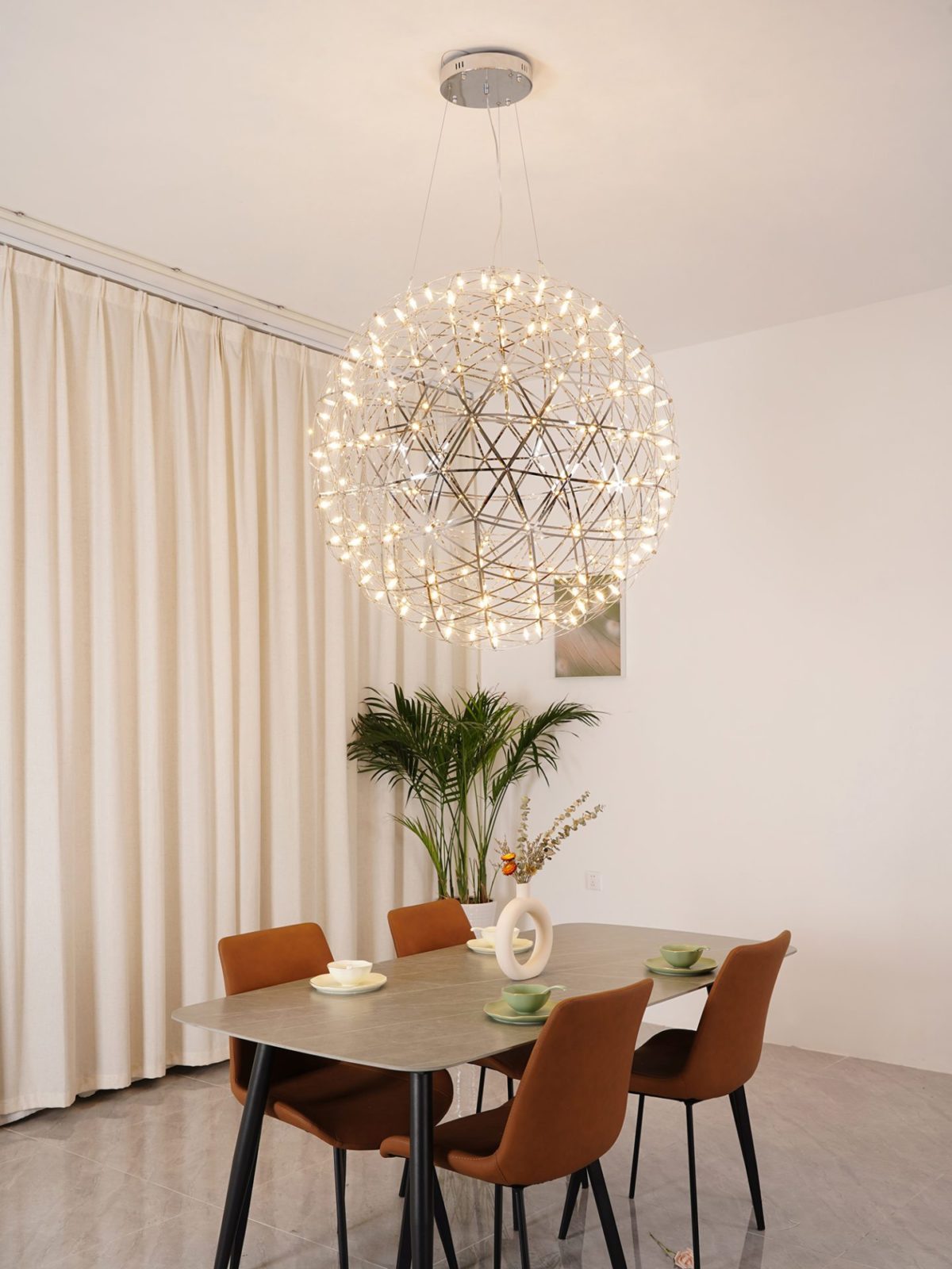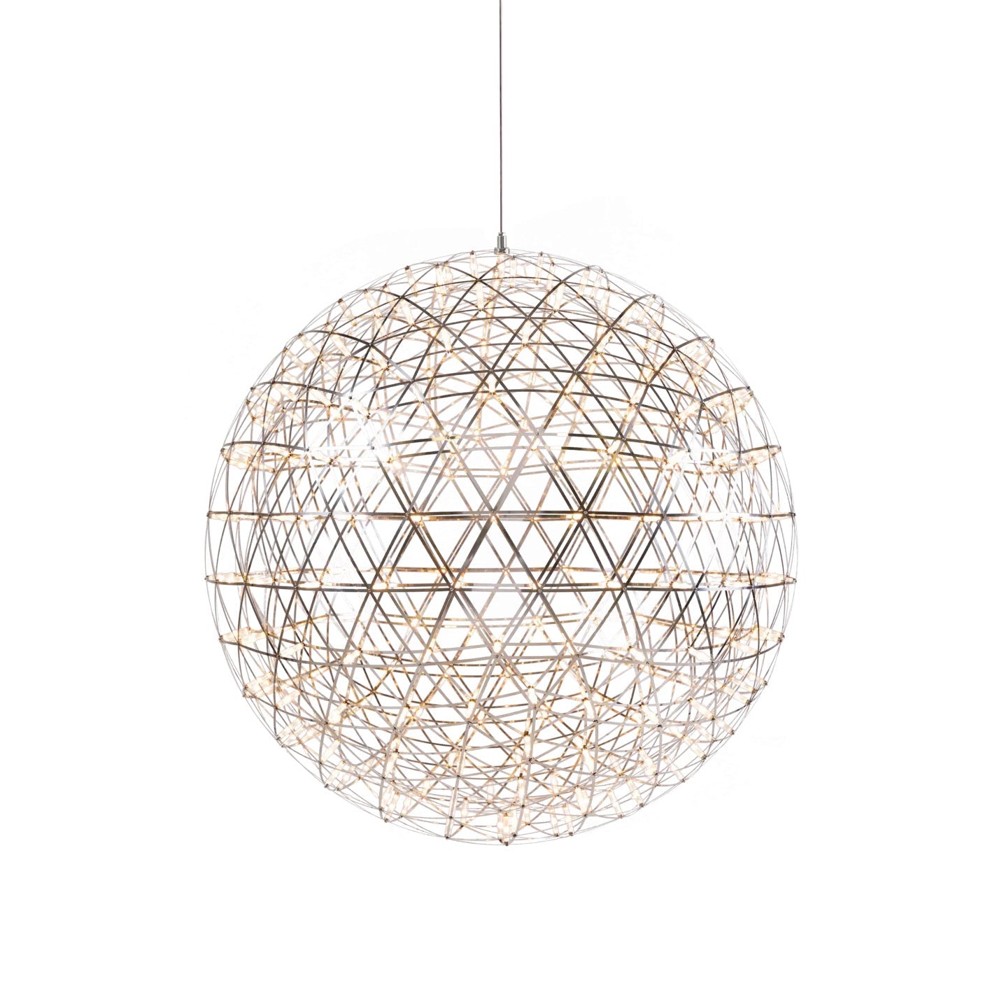 Experience the beauty of mathematical perfection with this spherical pendant light. Inspired by geodesic structures and celestial patterns, these spheres of LED lights bring the starry night sky into your home. Expertly designed for a scientifically precise and stunning addition to any space.