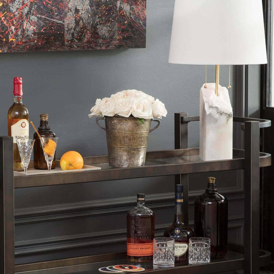 Alabaster is a natural stone, and each piece exhibits unique variations in pattern. The lamp body is hand-hewn, which may result in slight variations in height, contributing to the distinct character of each lamp.