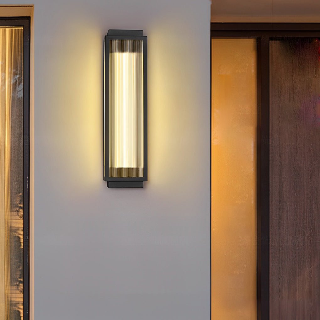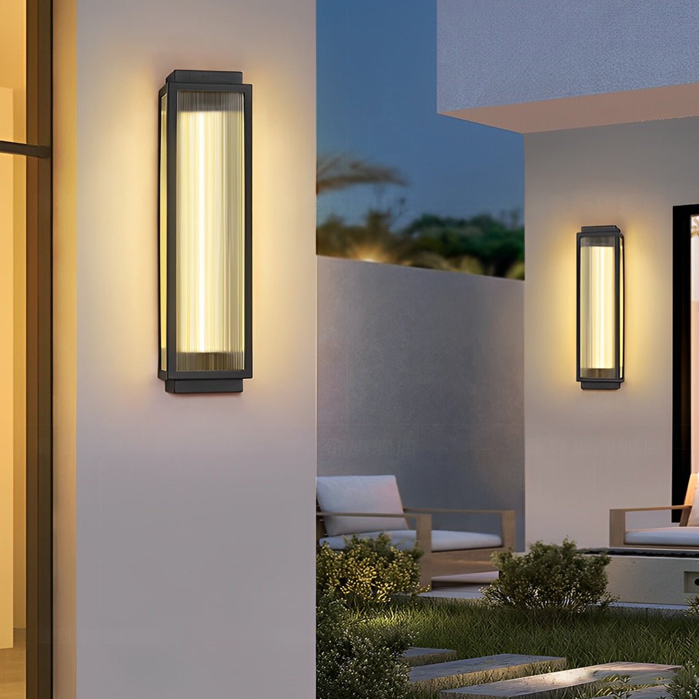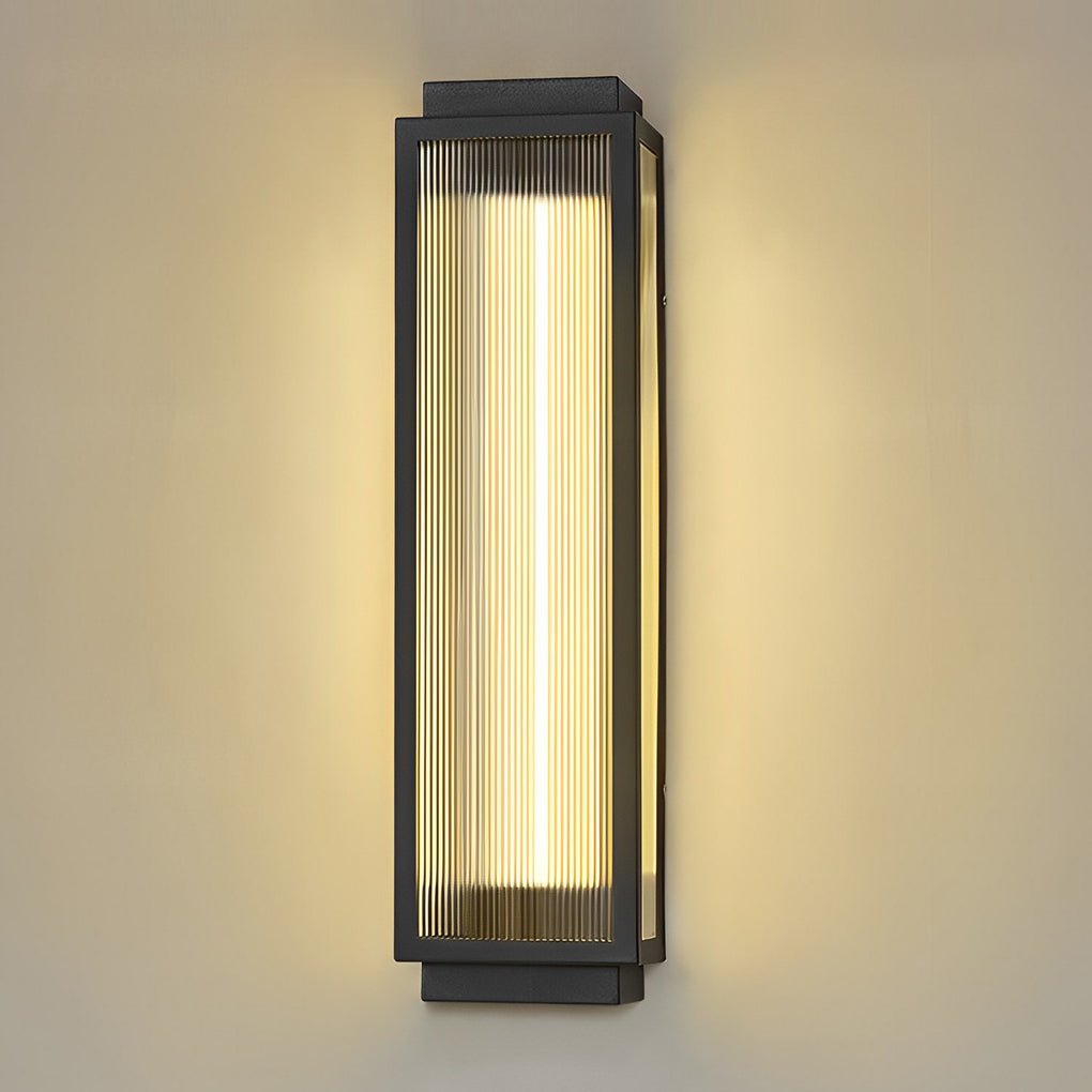 The LED outdoor porch light features a sleek and contemporary design, enhancing the modern aesthetic of any building wall. Its lighting effect creates a warm and inviting atmosphere.