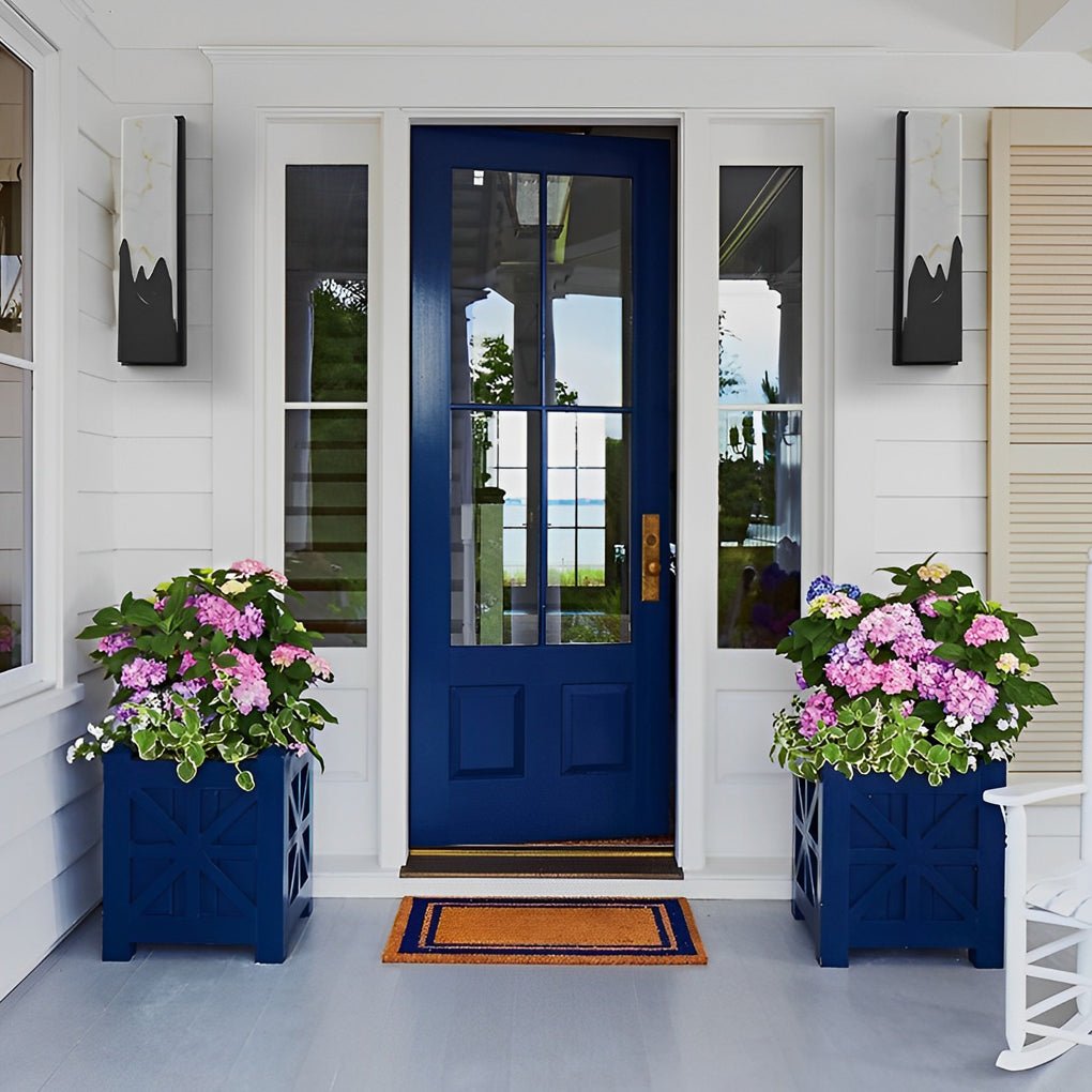 This outdoor wall lamp is constructed from stainless steel and imitation marble, offering waterproof and rustproof properties. It features a modern and simple design. The integrated LED light source provides warm white illumination (3000K), designed for energy-efficient exterior lighting. Its functional design complements various outdoor settings.