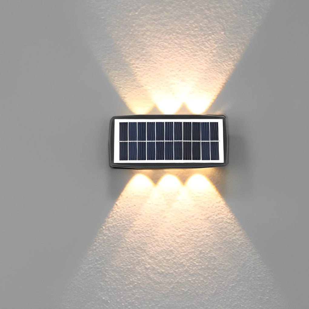 - The solar outdoor wall light creates a distinctive illumination effect. Its up-and-down lighting design casts sophisticated light and shadow patterns, enhancing your exterior walls.