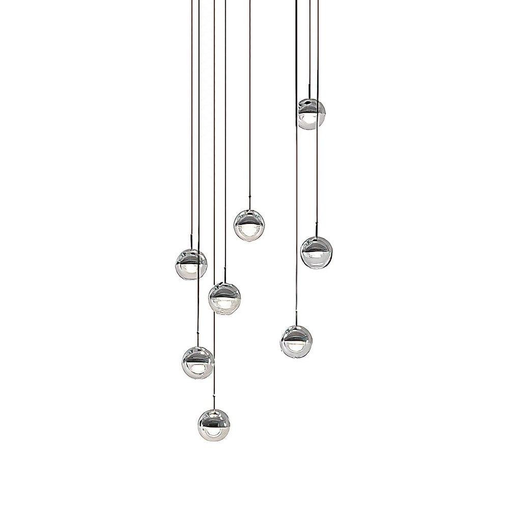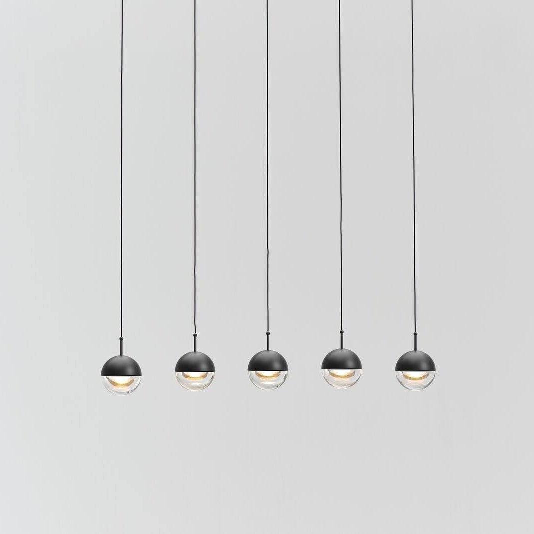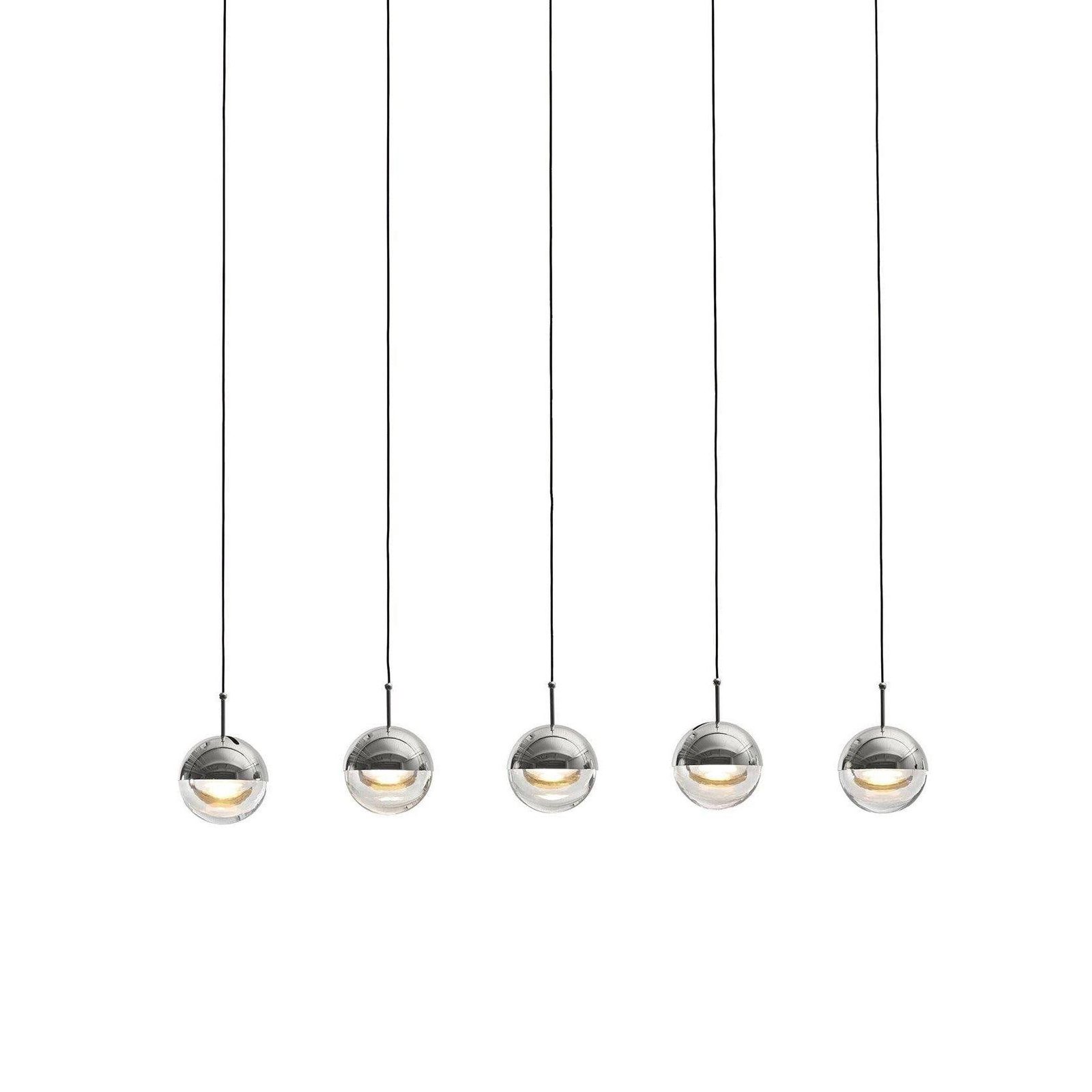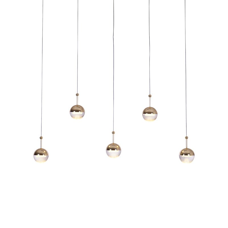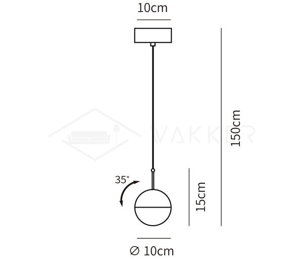 The Restaurant Art LED Pendant Light is a suspended drop light featuring a stylish ball crafted from steel and glass. Its unique half-transparent and half-opaque design creates a distinctive contrast. The shade can be rotated up to 35 degrees to achieve an angled light effect.