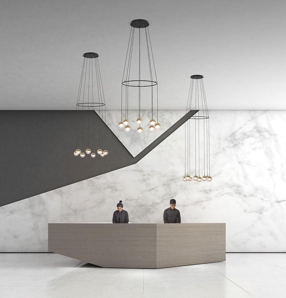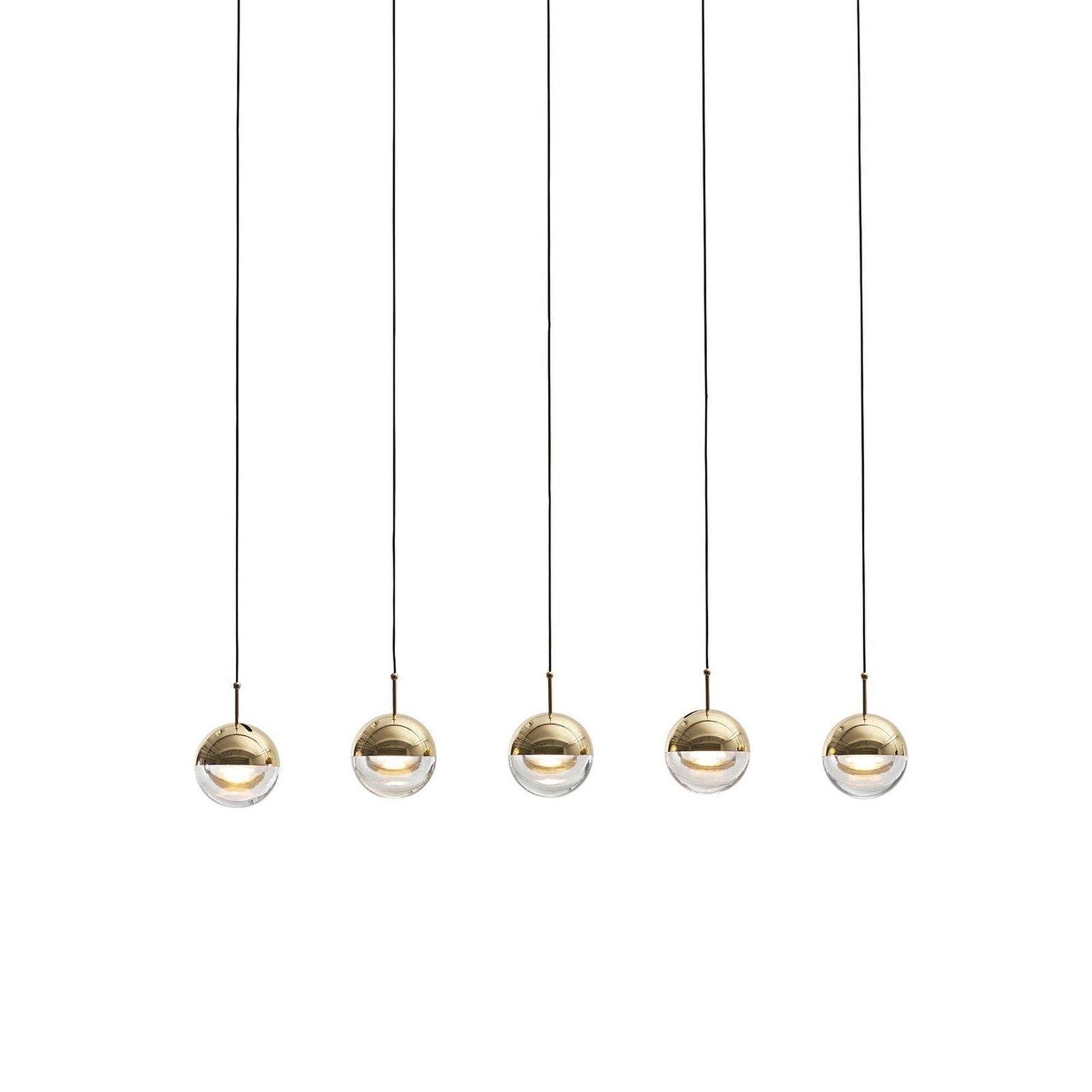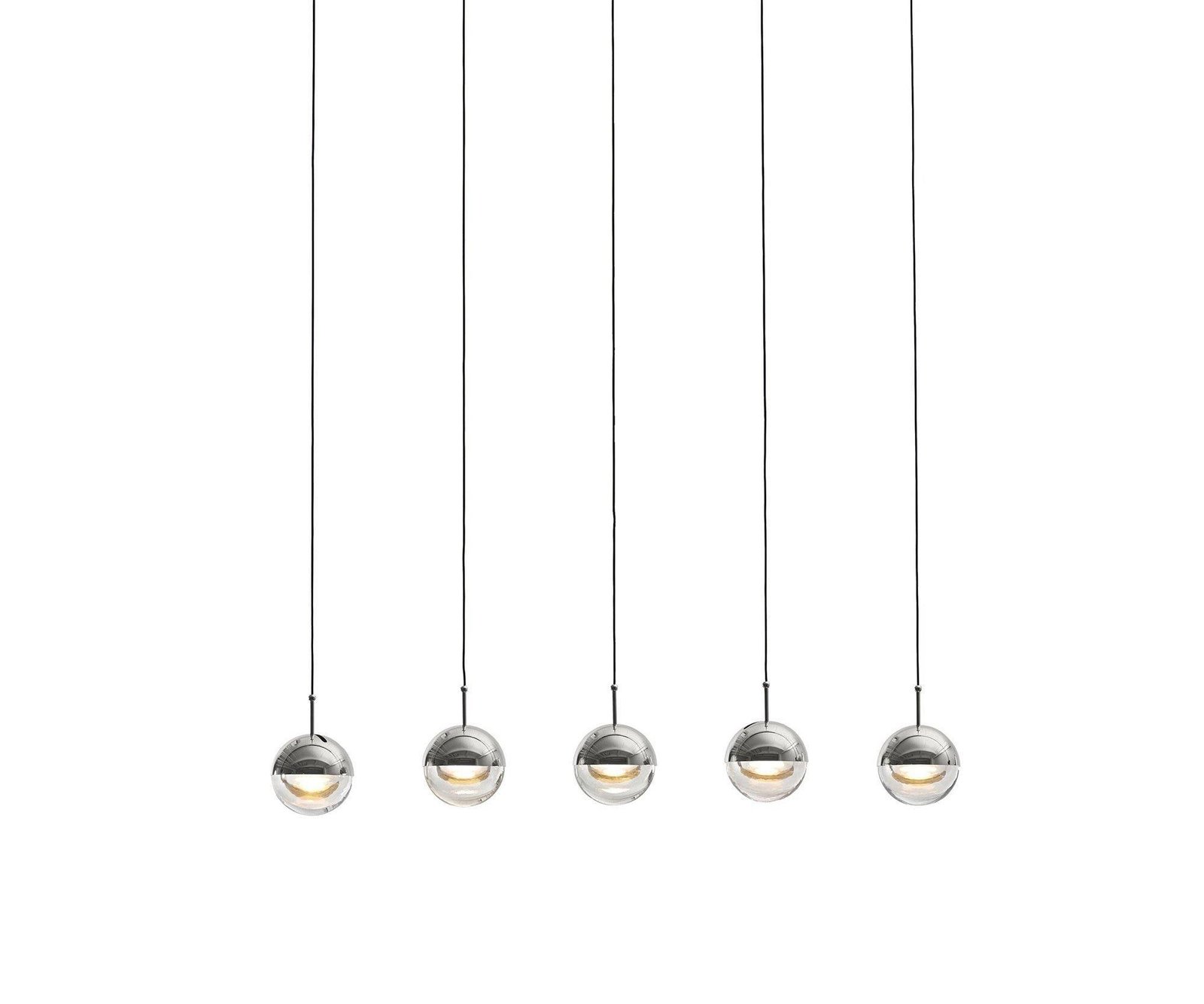 The Restaurant Art LED Pendant Light is a suspended drop light featuring a stylish ball crafted from steel and glass. Its unique half-transparent and half-opaque design creates a distinctive contrast. The shade can be rotated up to 35 degrees to achieve an angled light effect.