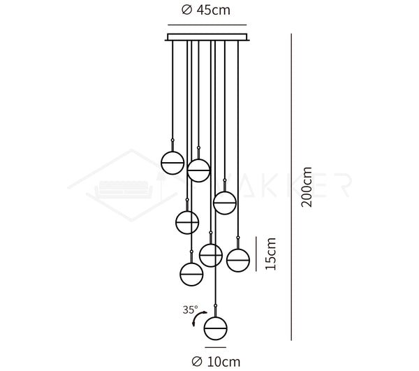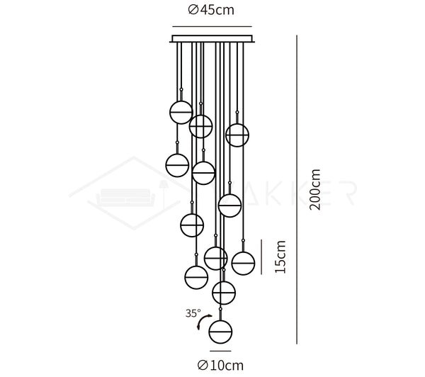 - 12heads size: Dia 45cm x H 200cm / ∅ 17.7″ x H 78.7″