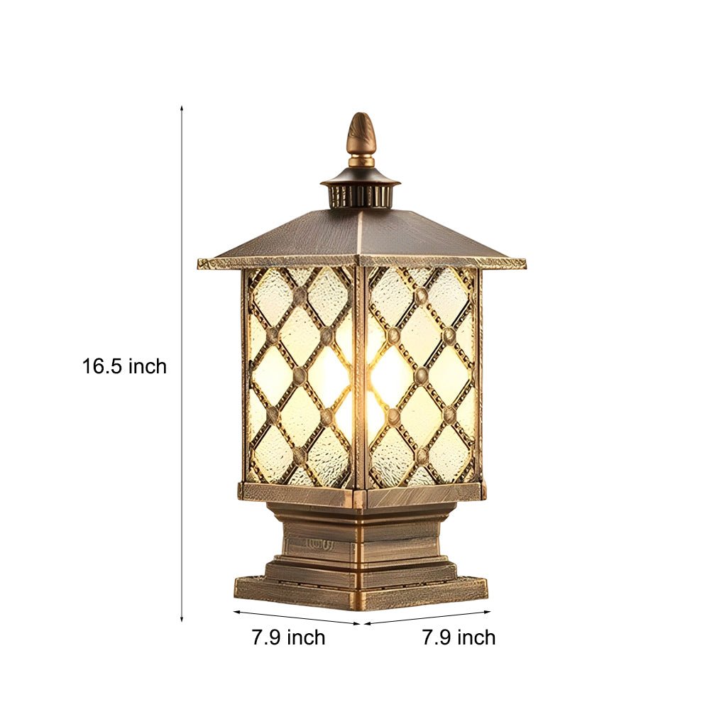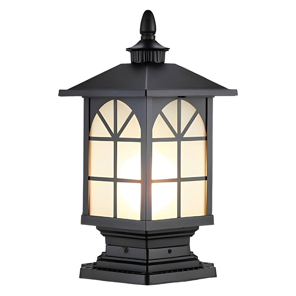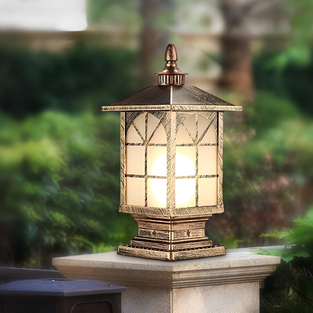 - The frosted glass lampshade of this waterproof pillar light offers high light transmittance, maintaining its color and integrity while providing enhanced illumination.