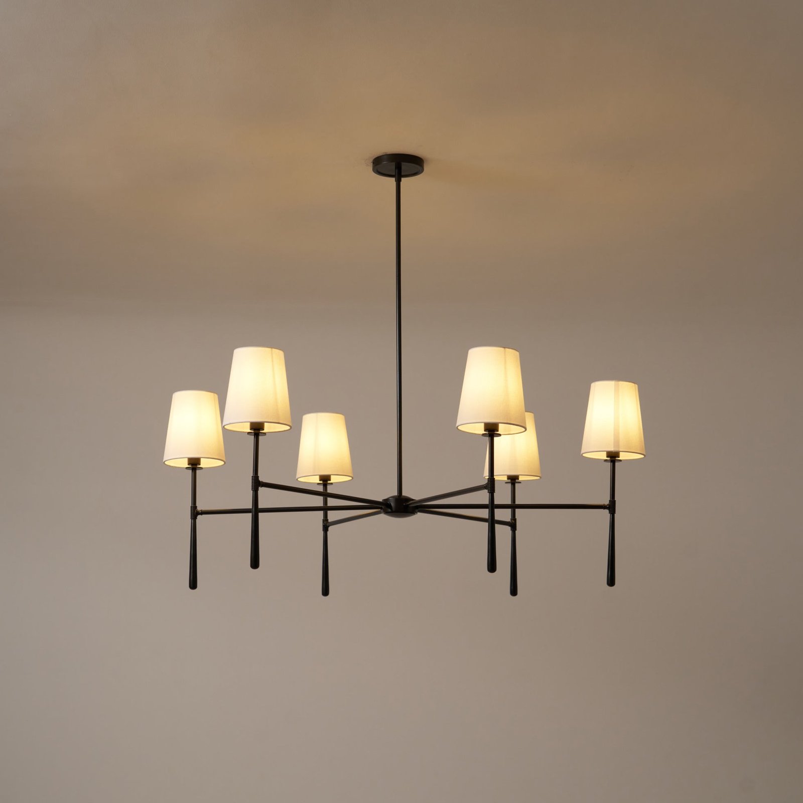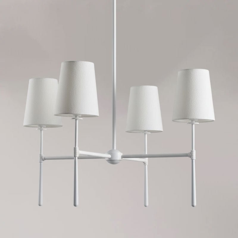 Boasting an exquisite, tapered torch design and luxurious textured linen shades, this lighting collection features versatile silhouettes and mid-century inspiration to complement any space. From lounge spaces to dining rooms, office spaces and beyond—the modern flair suits many décor aesthetics with its beautiful finishes, subtle wrapped detailing, and charming flourished elements that decorate the connections across pieces for a cohesive look.