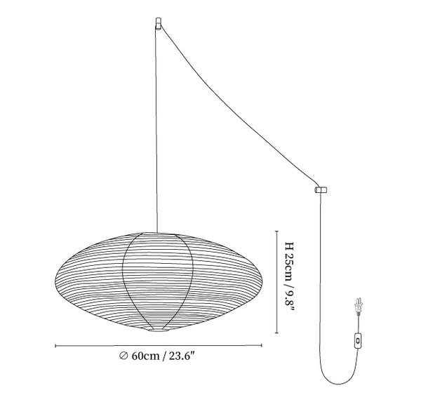 The Rice Paper 15A Swag Lights are handcrafted, featuring translucent washi paper made from the inner bark of mulberry trees. This design provides a gentle and inviting warmth, enhancing various interior spaces.