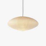 The Paper Lantern Pendant Light is a contemporary interpretation of traditional lantern designs, focusing on the interplay between material texture and light diffusion. This fixture features a handmade shade crafted from ivory white rice paper, which provides a soft, ambient glow suitable for various interior settings. The design is punctuated by black stained oak rings that offer structural definition and visual contrast. An open-bottom construction ensures focused illumination while maintaining the lightweight aesthetic of the fixture.