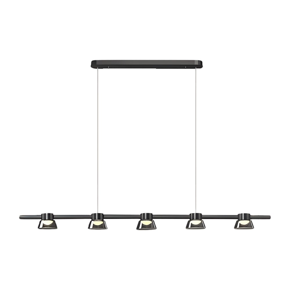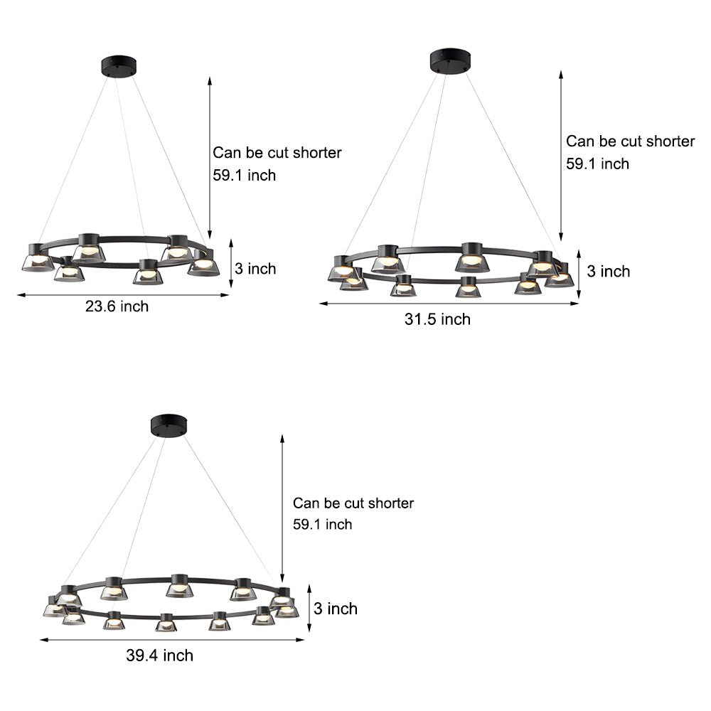 The Minihouzz Ring LED Pendant features an electroplated black metal frame with polished smoke-gray glass shades. This LED pendant is available in both a round ring shape and a linear design, offering versatility for modern interiors.