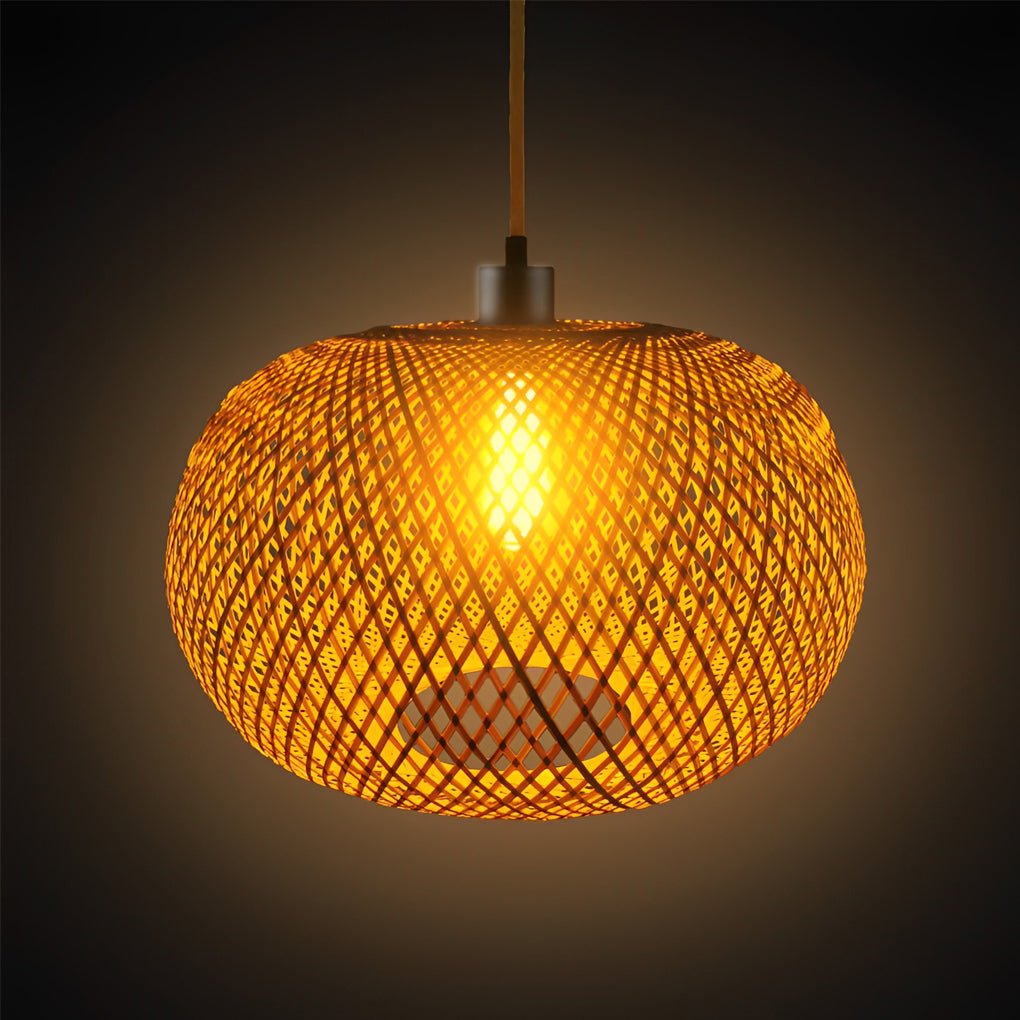 - This bamboo pendant lamp establishes a natural rustic and modern aesthetic in your room. Its hollow design allows light to integrate with the environment, promoting a comfortable and peaceful atmosphere.